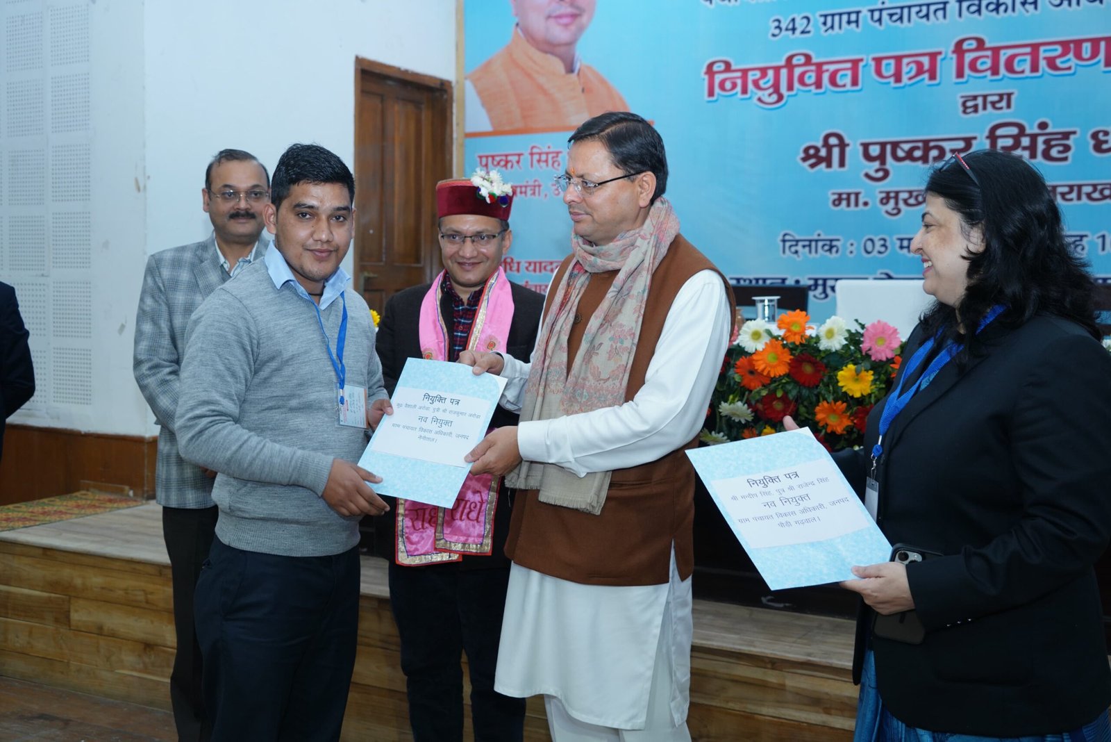देहरादून : मुख्यमंत्री पुष्कर सिंह धामी ने रविवार को मुख्यमंत्री आवास स्थित मुख्य सेवक सदन में पंचायती राज विभाग द्वारा आयोजित नियुक्ति पत्र वितरण समारोह में पंचायती राज विभाग के 08 सहायक लेखाकारों तथा 342 ग्राम पंचायत विकास अधिकारियों को नियुक्ति पत्र प्रदान किये। सहायक लेखाकारों का चयन लोक सेवा आयोग तथा ग्राम पंचायत विकास अधिकारियों का चयन अधीनस्थ सेवा चयन आयोग के माध्यम से किया गया है।