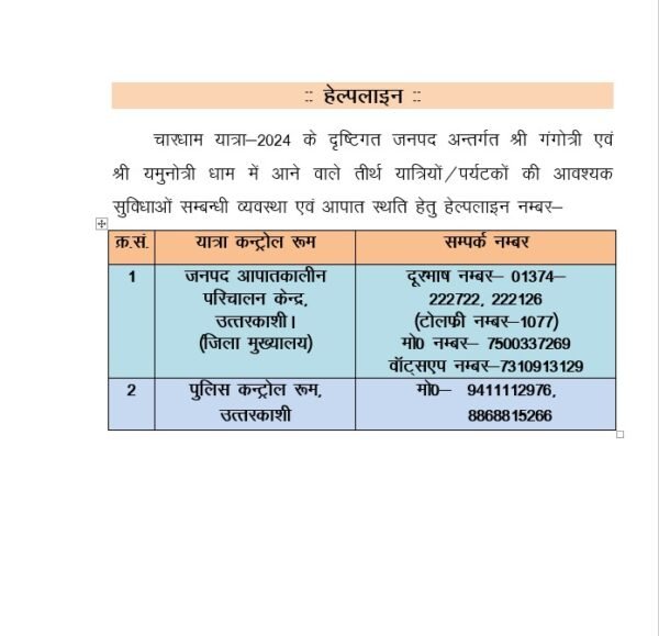 Home » Blog » चारधाम यात्रा : गंगोत्री और यमुनोत्री धाम आने वाले तीर्थयात्रियों की सुविधा को हेल्पलाइन नम्बर जारी