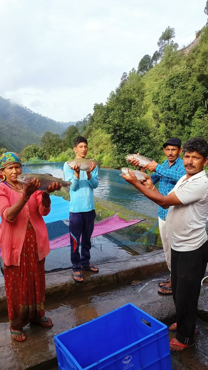मत्स्य विभाग द्वारा समितियों को ट्राउट मत्स्य बीज एवं आहार अनुदान धनराशि पर उपलब्ध करवाया गया था एवं समय समय पर तकनीकी सहयोग भी प्रदान किया गया था। ट्राउट मछली के विपणन हेतु बाजार उपलब्ध कराने हेतु मत्स्य विभाग व जिला प्रशासन के सहयोग से एक मत्स्य आउटलेट, फिश वैन एवं जनपद से बाहर आपूर्ति हेतु रेफ्रिजरेटेड वैन की व्यवस्था की गई है। जिससे ट्राउट मछली के विपणन हेतु बाजार उपलब्ध हो सके।