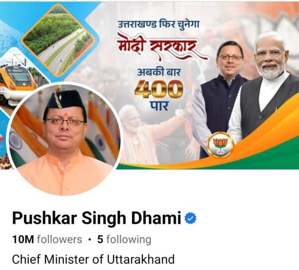 • फेसबुक पेज पर 10 मिलियन फॉलोअर्स के साथ धामी बड़े नेताओं की सूची में शामिल