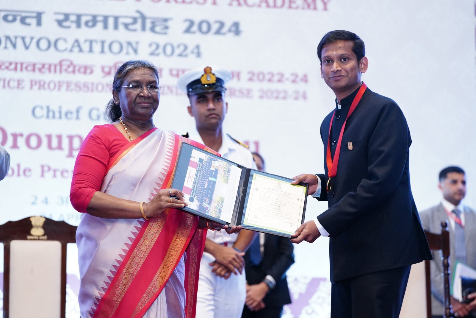 राष्ट्रपति द्रौपदी मुर्मु ने भारतीय वन सेवा के 2022 बैच के सभी प्रशिक्षु अधिकारियों को बधाई देते हुए कहा कि इस बैच में 10 महिला अधिकारी हैं। उन्होंने कहा कि महिलाएं समाज के प्रगतिशील बदलाव की प्रतीक हैं। राष्ट्रीय वन अकादमी की पर्यावरण के क्षेत्र में अत्यंत महत्वपूर्ण भूमिका रही है। भारतीय वन सेवा के अधिकारियों पर जंगलों के संरक्षण, संवर्धन एवं पोषण की जिम्मेदारी है। उन्होंने आशा व्यक्त की कि ये अधिकारी अपने इस अप्रतिम दायित्व के प्रति सजग और सचेत होंगे एवं पूर्ण निष्ठा से अपने उत्तरदायित्वों का निर्वहन करेंगे। उन्होंने कहा की हमारी प्राथमिकताएं मानव केंद्रित होने के साथ-साथ प्रकृति केंद्रित भी होनी चाहिए।