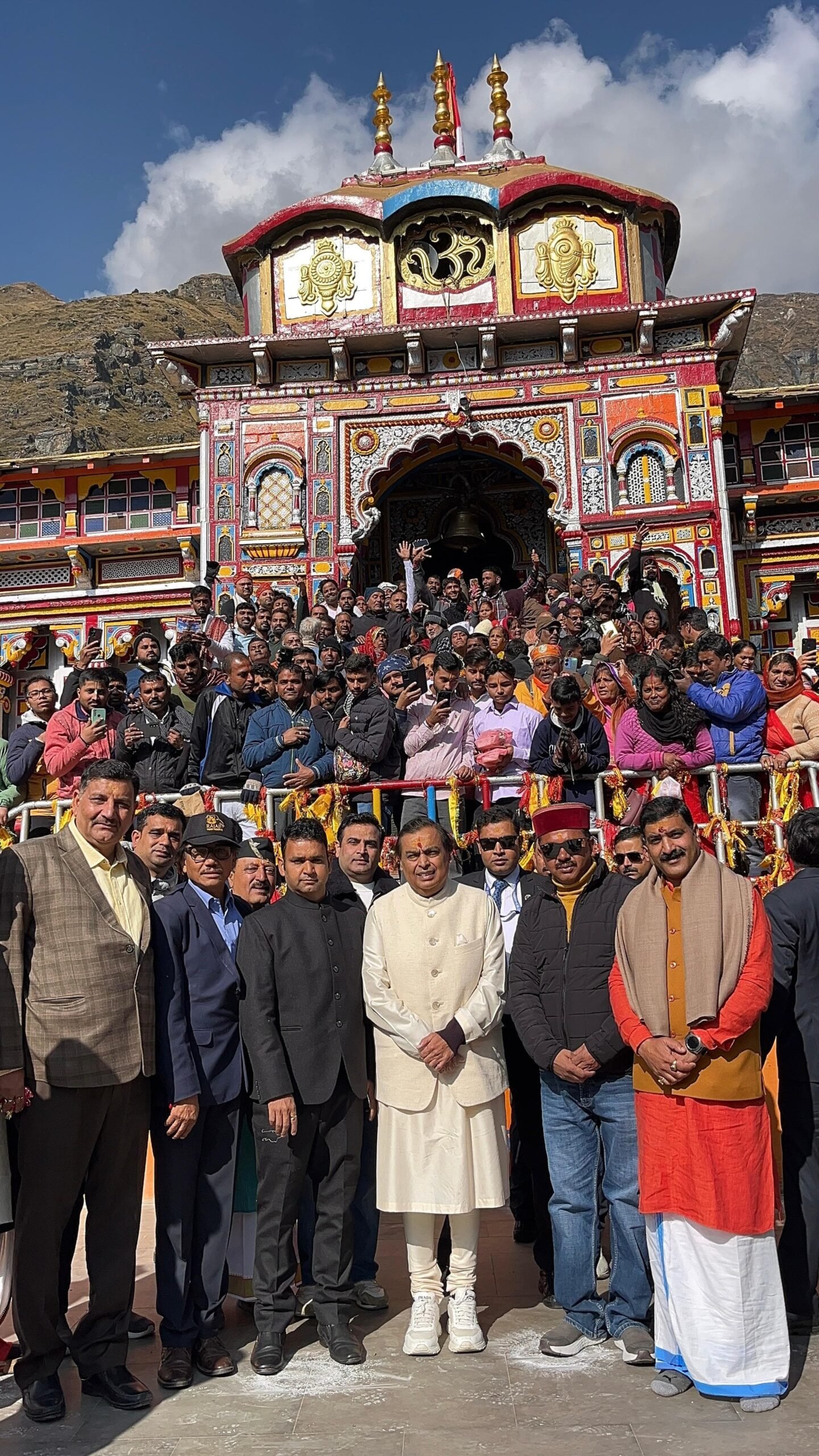 श्री बदरीनाथ/ केदारनाथ धाम : रिलायंस इंडस्ट्रीज के अध्यक्ष एवं प्रबन्ध निदेशक प्रसिद्ध उद्योगपति मुकेश अंबानी ने आज श्री बदरीनाथ धाम तथा श्री केदारनाथ धाम के दर्शन किये। प्रसिद्ध उद्योगपति मुकेश अंबानी पहले श्री बदरीनाथ धाम पहुंचे। उसके पश्चात श्री केदारनाथ धाम दर्शन को पहुंचे। श्री केदारनाथ धाम में श्री बदरीनाथ – केदारनाथ मंदिर समिति (बीकेटीसी) अध्यक्ष अजेंद्र अजय ने उद्योगपति मुकेश अंबानी का स्वागत किया।इससे पहले आज प्रात: 9 बजे मुकेश अंबानी श्री बदरीनाथ धाम पहुंचे सीधे मंदिर में दर्शन को पहुंचे उन्होंने वेदपाठ पूजा संपन्न की। उसके पश्चात मंदिर परिसर स्थित माता लक्ष्मी मंदिर में भी दर्शन किये। दर्शन के पश्चात उन्होंने श्री बदरीनाथ मंदिर सिंह द्वार पर प्रशंसकों तथा मंदिर समिति पदाधिकारियों के साथ फोटो भी खिंचवाए।