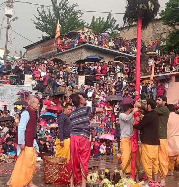जोशीमठ(चमोली) : श्री बदरीनाथ यात्रा के सफलता एवं कुशलता हेतु आज शनिवार को श्री नृसिंह मंदिर जोशीमठ में तिमुंडिया मंदिर में पूजा संपन्न हुई। पूजा- अर्चना के बाद तिमुंडिया वीर का आह्वान हुआ भरत बैंजवाड़ी पर पश्वा( अवतारी पुरूष) तिमुंडिया वीर जागृत हुआ उन्होंने पांच किलो से अधिक चावल- गुड़ कई घड़े पानी का भोग गृहण किया यह देखकर सभी श्रद्धालु अचंभित रह गये। पश्वा ने श्री बदरीविशाल यात्रा के निविघ्न शुरू होने का भी आशीर्वाद दिया। इस अवसर पर सैकड़ों की संख्या में श्रद्धालु दर्शन को पहुंचे थे।