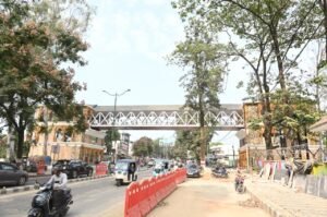 पहाड़ी वास्तुशिल्प की छाप वाले फुटओवर ब्रिज का निर्माण पूरा