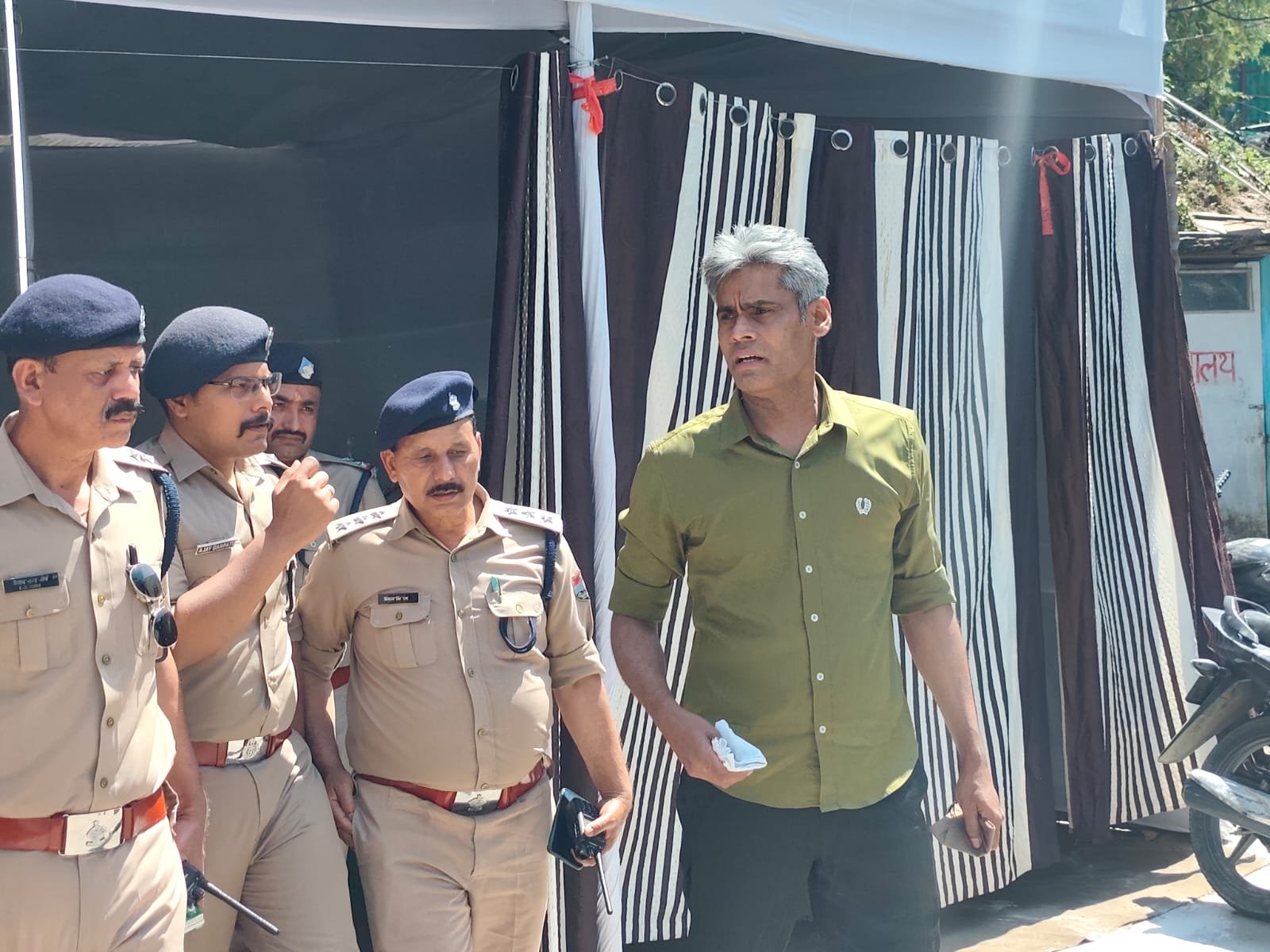 टनकपुर : कुमाऊँ भ्रमण के दौरान आज 31 मार्च, 2025 को अपर पुलिस महानिदेशक अपराध एवं कानून व्यवस्था उत्तराखंड डॉ. वी. मुरुगेशन द्वारा जनपद चंपावत के थाना टनकपुर क्षेत्रान्तर्गत आयोजित हो रहे उत्तर भारत के सुप्रसिद्ध मेले श्री माँ पूर्णागिरी मेले में कानून एवं सुरक्षा व्यवस्था, यातायात व्यवस्था की समीक्षा की गयी तथा श्री माँ पूर्णागिरी मंदिर दर्शन किए गए। इस दौरान अपर पुलिस महानिदेशक डॉ. वी. मुरुगेशन द्वारा सरल, सुगम, शांतिपूर्वक व व्यवधान रहित तरीके से श्रद्धालुओं को श्री माँ पूर्णागिरी मंदिर दर्शन कराए जाने के संबंध में पुलिस अधीक्षक चंपावत अजय गणपति को निर्देशित किया गया।