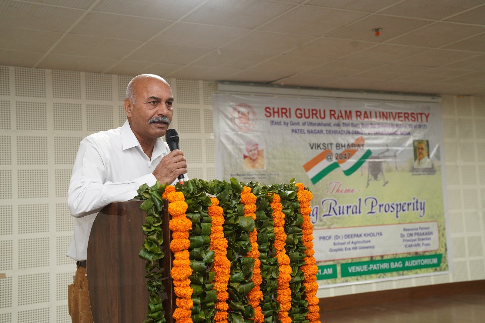 देहरादून : श्री गुरु राम राय विश्वविद्यालय में ग्रामीण समृद्धि को बढ़ावा देने और विकसित भारत में युवाओं की भागीदारी को समझते हुए विकसित भारत @2047 की थीम पर एक दिवसीय कार्यशाला का आयोजन किया गया। कार्यशाला का शुभारंभ श्री गुरु राम राय विश्वविद्यालय के कुलसचिव डॉ अजय कुमार खंडूड़ी , कार्यक्रम की नोडल ऑफिसर प्रोफेसर मालविका कांडपाल, मुख्य वक्ता आईसीएआर पूसा नई दिल्ली के वैज्ञानिक डॉक्टर ओम प्रकाश, ग्राफिक एरा यूनिवर्सिटी देहरादून के स्कूल ऑफ़ एग्रीकल्चर के प्रोफेसर डॉ दीपक खोलिया और श्री गुरु राम राय विश्वविद्यालय की स्कूल आफ एग्रीकल्चर की संकाय अध्यक्ष प्रोफेसर प्रियंका बनकोटी ने दीप प्रज्वलित कर किया। कार्यशाला के सफल आयोजन के लिए विश्वविद्यालय के कुलाधिपति श्रीमहंत देवेंद्र दास जी महाराज और कुलपति प्रोफेसर यशबीर दीवान ने आयोजकों को शुभकामनाएं प्रेषित की।