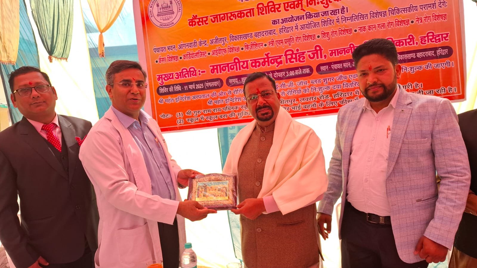 जिलाधिकारी कर्मेन्द्र सिंह ने कहा कि श्री महंत इन्दिरेश अस्पताल, देहरादून की ओर से स्वास्थ्य सेवाओं में बहुत अच्छा कार्य किया जा रहा है। उन्होंने कहा कि श्री महंत इन्दिरेश अस्पताल ने अजीतपुर, हरिद्वार में कैंप आयोजित कर क्षेत्रवासियों को कैंसर जागरूकता के बारे में महत्वपूर्णं जानकारियां सांझा की और आमजन के लिए कैंप लगाया, यह स्वागत योग्य पहल् है। शिविर आयोजित करने के लिए उन्होंने श्री महंत इन्दिरेश अस्पताल प्रबन्धन एवं अस्पताल की पूरी टीम को बधाई दी।