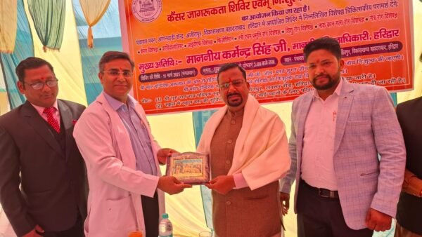 श्री महंत इन्दिरेश अस्पताल के कैंसर सर्जरी विभाग के प्रमुख डाॅ पंकज कुमार गर्ग ने कहा कि कैंसर के प्रति समाज के हर वर्ग में जागरूकता बेहद जरूरी है। कैंसर से डरना नहीं लड़ना है। उन्होंने देश के कई राज्यों सहित उत्तराखण्ड को रेखांकित करते हुए कैंसर रोगियों की बढ़ती संख्या पर गहरी चिंता जाहिर की। उन्होंने कहा कि कैंसर जागरूकता ही कैंसर से सबसे पहला बचाव है। अपने व्याख्यान में उन्होंने कैसर के लक्ष्ण, उपचार, आधुनिक तकनीकों एवं रोकथाम से जुडी महत्वपूर्ण जानकारियों सांझा की। कार्यक्रम में प्रखर कश्यप, ग्राम प्रधान अजीतपुर, डाॅ विशाल गर्ग, प्रदेश कार्यकारिणी सदस्य भाजपा, सोहन वीर पाल, जिला पंचायत सदस्य एवम धर्मेन्द्र चौहान ने भी विचार व्यक्त किए। मंच संचालन सिमरन अग्रवाल ने किया।