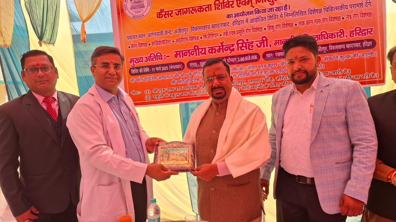 11 मार्च 2025 मंगलवार को शिविर का शुभारंभ मुख्य अतिथि कर्मेन्द्र सिंह, जिलाधिकारी हरिद्वार, प्रखर कश्यप, ग्राम प्रधान अजीतपुर, डाॅ विशाल गर्ग, प्रदेश कार्यकारिणी सदस्य भाजपा, सोहन वीर पाल, जिला पंचायत सदस्य, धर्मेन्द्र चौहान, प्रधानाचार्य ए बी एस इंटर कॉलेज, डाॅ पंकज कुमार गर्ग व सचिन जोशी, प्रधानाचार्य, एसजीआरआर पब्लिक स्कूल हरिद्वार ने दीप प्रज्जवलित कर किया।