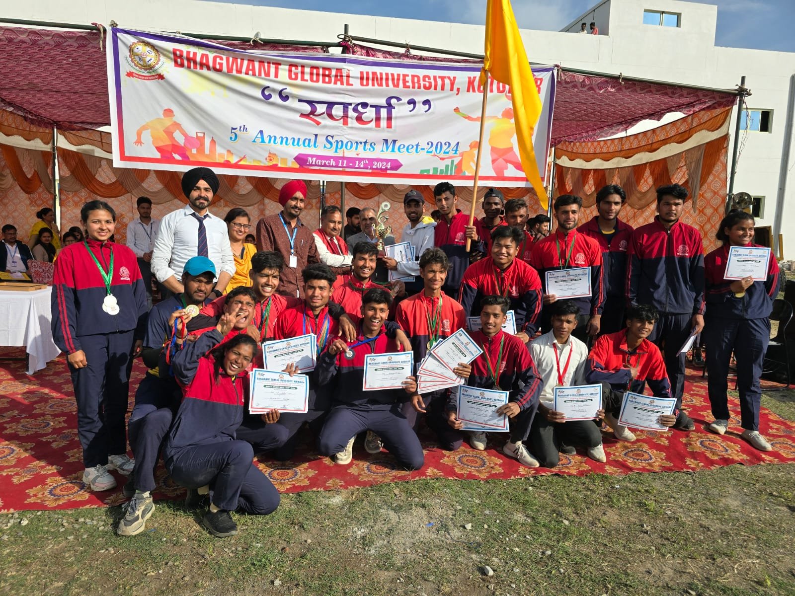 कोटद्वार । भगवंत ग्लोबल विश्वविद्यालय में वार्षिक खेलकूद प्रतियोगिता ‘स्पर्धा’ 2024 का शांति पूर्वक समापन । भाबर स्थित भगवंत ग्लोबल विश्वविद्यालय में तीन दिवसीय वार्षिक खेलकूद सम्मेलन ‘स्पर्धा’ का आज विधिवत समापन हो गया। समापन अवसर पर भगवंत ग्लोबल विश्वविद्यालय के प्रतिकुलपति प्रो. पीएस राणा ने सर्वप्रथम मुख्य अतिथि प्राचार्य राजकीय महाविद्यालय कण्वघाटी कोटद्वार प्रो. वीके अग्रवाल को पुष्प गुच्छ व स्मृति चिन्ह भेंट कर स्वागत किया। प्रो. पीएस राणा ने खेल को जीवन के लिए आवश्यक बताया। उन्होंने कहा कि खेल से जहां एक ओर मनोरंजन होता है वहीं दूसरी ओर शारीरिक के साथ सामाजिक विकास भी होता है। अपने उद्बोधन में मुख्य अतिथि प्राचार्य राजकीय महाविद्यालय कण्वघाटी कोटद्वार प्रो. वीके अग्रवाल ने स्वस्थ रहने हेतु खेल की उपयोगिता बताई।