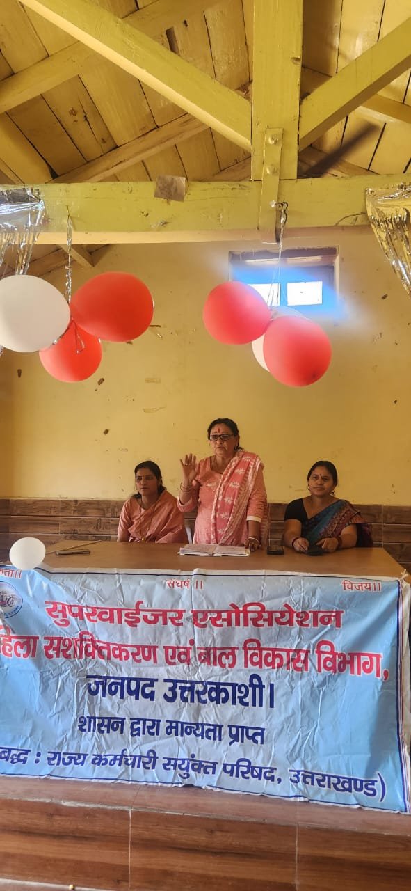 उत्तरकाशी (कीर्ति निधि सजवाण):  महिला सशक्तिकरण एवं बाल विकास विभाग जनपद उत्तरकाशी की सुपरवाईज़र एसोसिएशन जनपद उत्तरकाशी के द्विवार्षिक अधिवेशन/चुनाव में सर्वसहमति से अर्जुना चौहान को तीसरी बार निर्विरोध अध्यक्ष निर्वाचित होने पर एवं नव  निर्वाचित पदाधिकारियों मे संरक्षक मन्जू गुसाईं , उपाध्यक्षा पद शैला बिष्ट, कोषाध्यक्षा रेनू भण्डारी, उप कोषाध्यक्षा ऊषा जोशी  को  निर्विरोध चुना गया । वरिष्ठ उपाध्यक्षा बालेश को चुना गया है, उपमंत्री सुषमा रावत, प्रचार मन्त्री  नीलम सजवाण , उपप्रचार मंत्री  आशा जिन्दवाण  को नामित किया गया नव निर्वाचित अध्यक्ष के द्वारा सभी नवनिर्वाचित सदस्यों का आभार और धन्यवाद किया गया। उन्होंने कहा कि आप सभी की सहमति से सुपरवाईज़र एसोसिएशन जनपद उत्तरकाशी की कार्यकारिणी का नव गठन सभी के सहमति एवं सहयोग से किया गया है । इसके लिए सभी का हृदय से धन्यवाद और आशा एवं उम्मीद के साथ कि इसी प्रकार सभी का साथ हमेशा मिलता रहे। सभी नव निर्वाचित पदाधिकारियों को पद और गोपनीयता की शपथ दिलाई गई है।