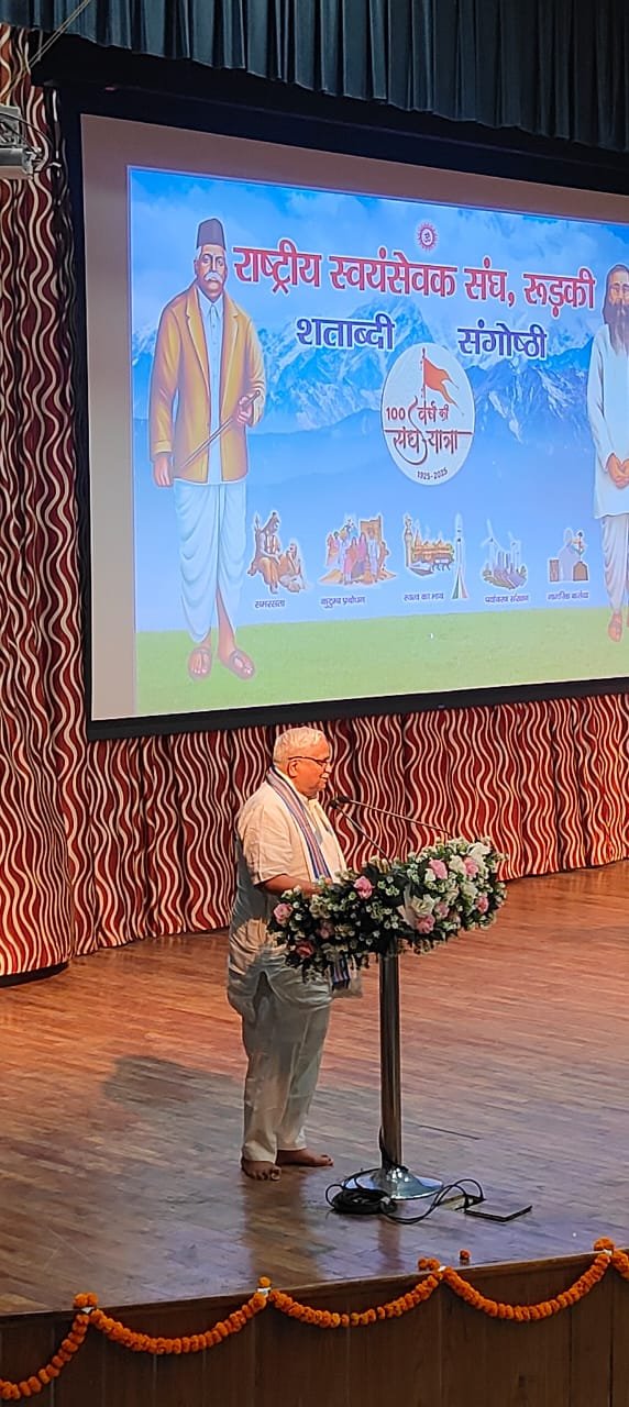 रुड़की : राष्ट्रीय स्वयंसेवक संघ के शताब्दी वर्ष के उपलक्ष में शनिवार को आईआईटी रुड़की में प्रमुख जन गोष्ठी का आयोजन किया गया। कार्यक्रम में मुख्य वक्ता के रूप में संघ के पूर्व सरकार्यवाह एवं वर्तमान अखिल भारतीय कार्यकारिणी सदस्य सुरेश (भैय्याजी) जोशी ने कहा कि विश्व ने भारत को यह जिम्मेदारी दी है कि वह विश्व का शुद्धिकरण करे। भारत का स्वभाव सदैव श्रेष्ठ देने का रहा है, और संघ इसी भावना को लेकर आगे बढ़ रहा है।