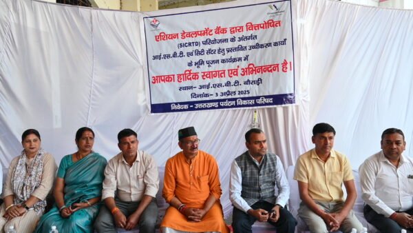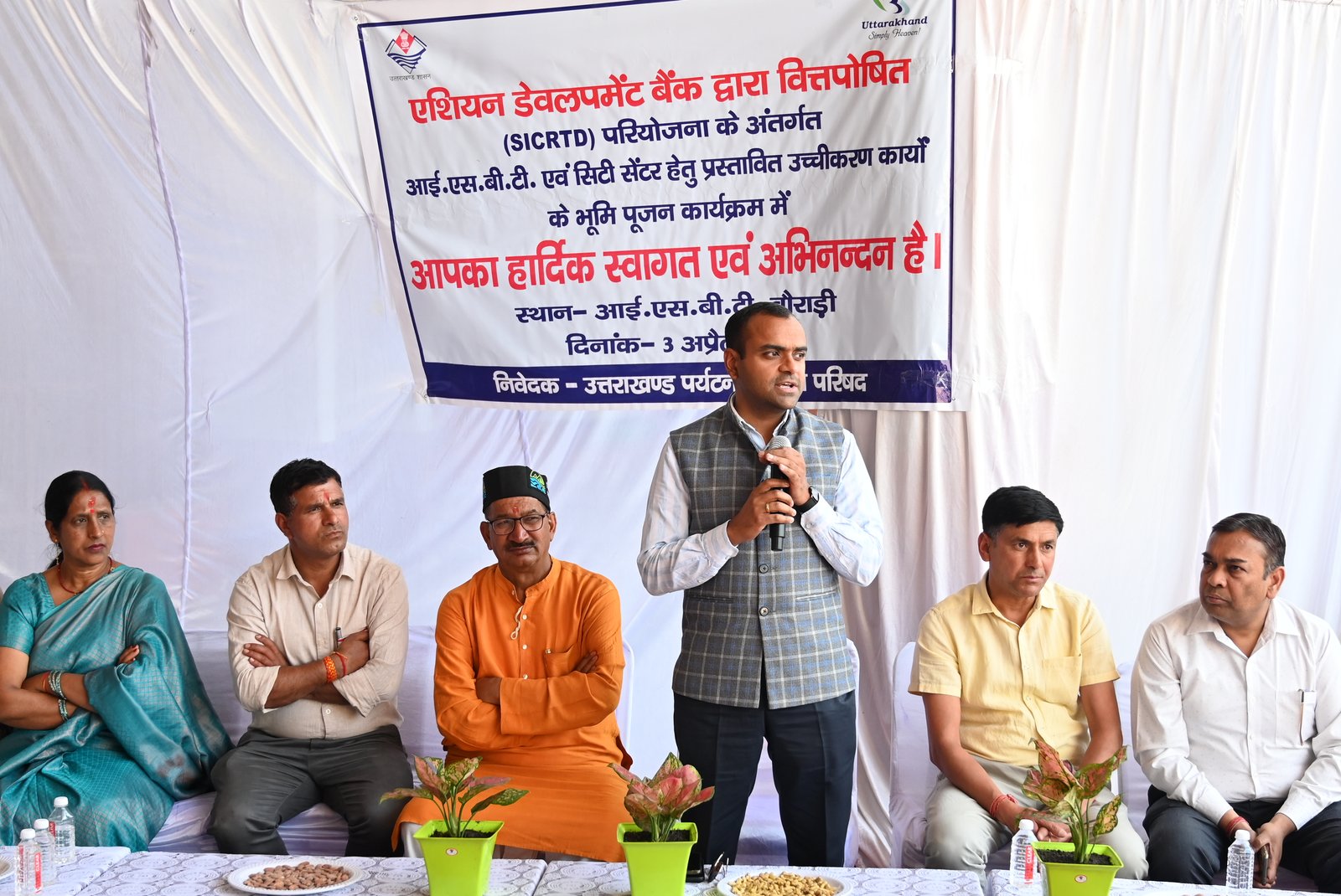 टिहरी : गुरूवार को बौराड़ी नई टिहरी में एशियन डेवल्पमेंट बैंक (ए.डी.बी.) द्वारा वित्त पोषित आईएसबीटी एवं सिटी सेंटर हेतु प्रस्तावित उच्चीकरण कार्यों का विधायक टिहरी किशोर उपाध्यय, जिलाधिकारी मयूर दीक्षित सहित अन्य गणमन्यों ने भूमि पूजन किया। इस मौके पर क्षेत्रीय विधायक ने शुभकामनाएं देते हुए कहा कि आईएसबीटी एवं सिटी सेंटर के बनने से नई टिहरी का विकास होगा तथा स्थानीय व्यापारियों को इसका लाभ मिलेगा। उन्होंने धनराशि का सही उपयोग करने एवं कार्यों की गुणवत्ता पर विशेष ध्यान देने के साथ ही शिक्षा और स्वास्थ्य के क्षेत्र में भी प्रगति की आवश्यकता पर बल देने को कहा।