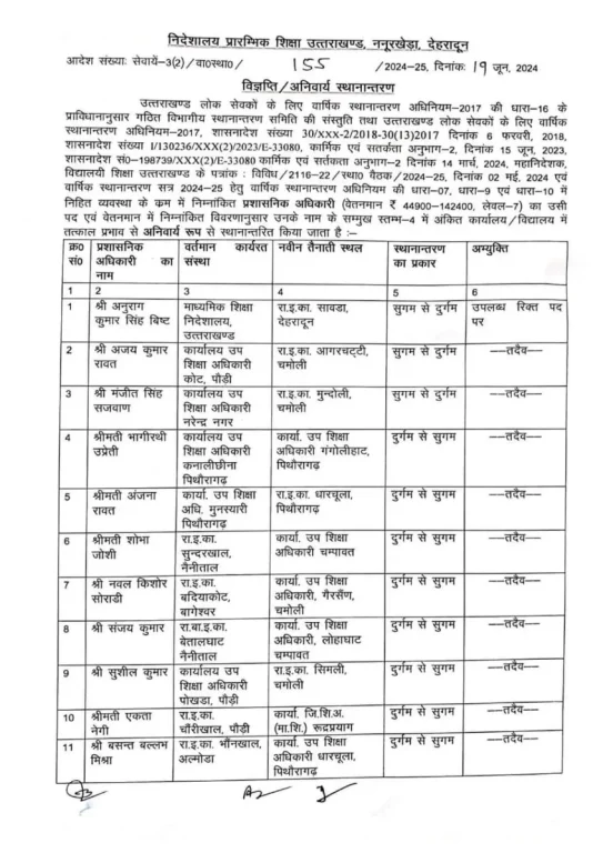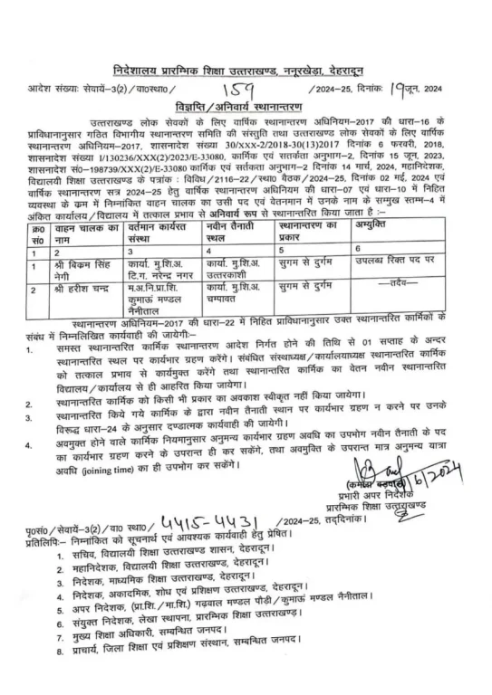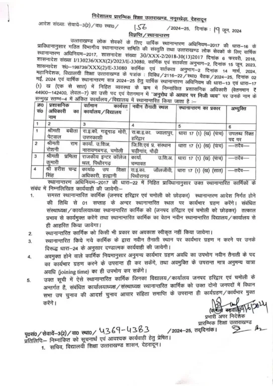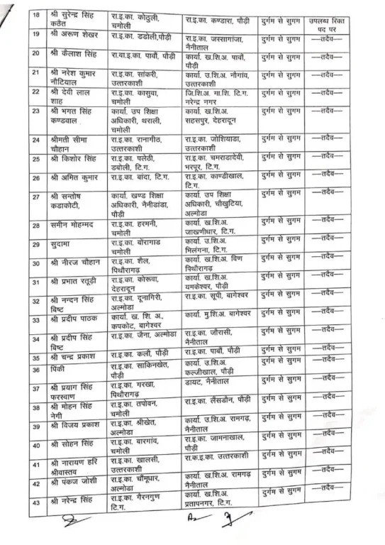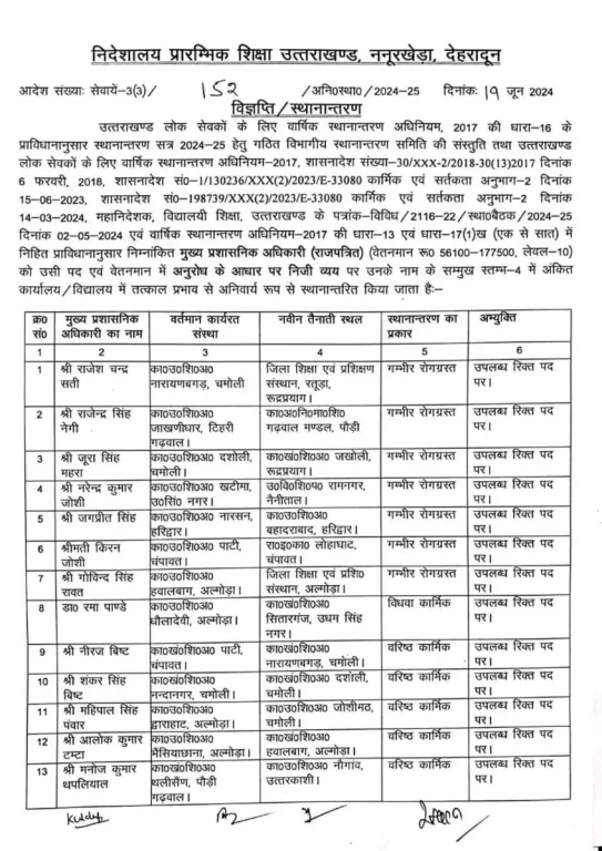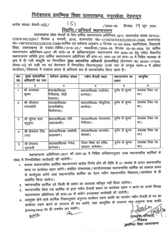 देहरादून : शिक्षा विभाग में बड़े स्तर पर तबादले हुए हैं। इनमें सुगम में डटे शिक्षकों को दुर्गम में भेजा गया है। अंतर मंडलीय स्थानांतरण भी किए गए हैं।