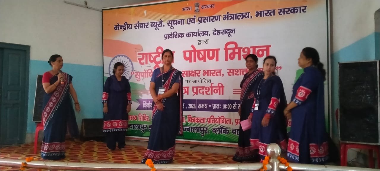 हरिद्वार : भारत सरकार के सूचना प्रसारण मंत्रालय केंद्रीय संचार ब्यूरो शाखा देहरादून के माध्यम से राष्ट्रीय पोषण मिशन के तहत देशभर में मनाई जा रहे पोषण माह के अंतर्गत ज्वालापुर इंटर कॉलेज के प्रांगण में पोषण दृश्य चित्र प्रदर्शनी का आयोजन किया जा रहा था जिसका शुक्रवार को रंगारंग सांस्कृतिक कार्यक्रमों के साथ समापन हुआ सामापन। इस अवसर पर ब्लॉक बहादराबाद के ग्राम अजीतपुर के प्रधान प्रखर कश्यप मुख्य अतिथि, शाहपुर शीतला खेड़ा के ग्राम प्रधान दीपक सैनी, जिया पोता के ग्राम प्रधान कृष्ण पाल विशिष्ट अतिथि के रूप में उपस्थित रहे ।