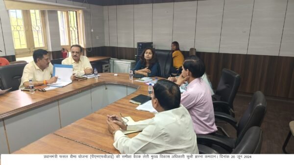 देहरादून : मुख्य विकास अधिकारी झरना कमठान ने विकासभवन सभागार में प्रधानमंत्री फसल बीमा योजना (पीएमएफबीआई) की समीक्षा बैठक लेते हुए सम्बन्धित विभागों के अधिकारियों, बैंकों के प्रबन्ध्कों, एवं इंश्योरेंश कम्पनी के अधिकारियों जनपद में शत्प्रतिशत् कृषकों को फसल बीमा से आच्छादित करने के निर्देश दिए।