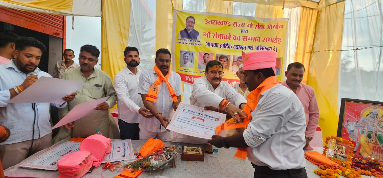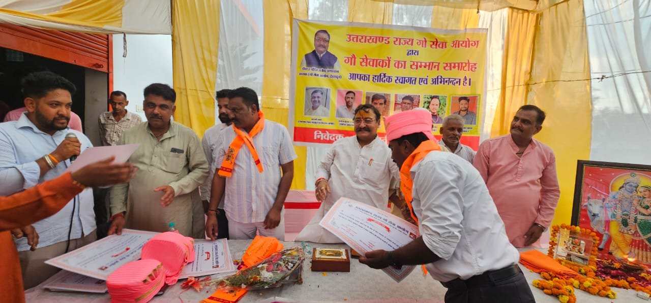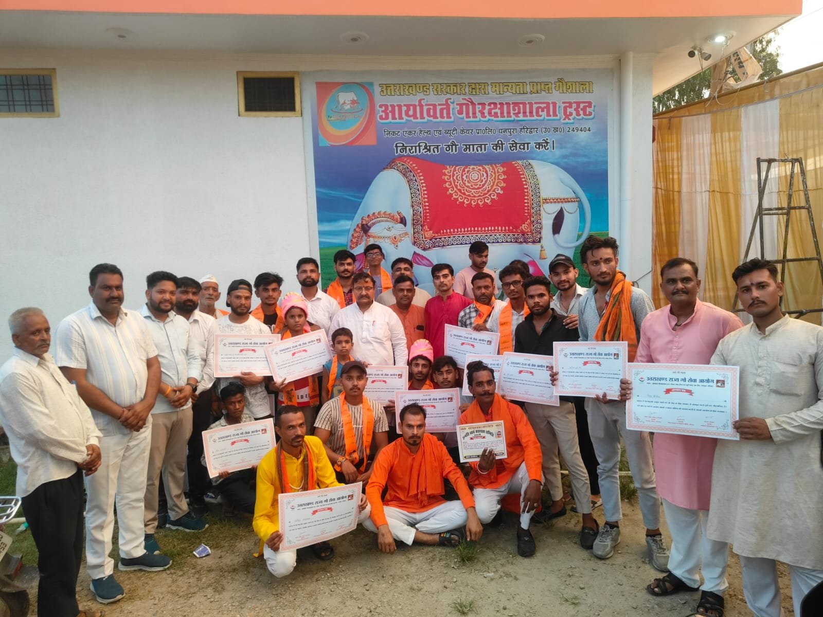 हरिद्वार : अध्यक्ष राज्य गो सेवा आयोग उत्तराखंड डॉ. पंडित राजेन्द्र अंथवाल ने आर्यावर्त गौ रक्षा शाला ट्रस्ट की ओर से पथरी मार्ग धनपुरा में गौ सेवा कर रहे लोगों को सम्मानित किया। कार्यक्रम में 100 से अधिक गौ सेवकों को सम्मानित किया गया।  अध्यक्ष राज्य गो सेवा आयोग उत्तराखंड डॉ. पंडित राजेन्द्र अंथवाल ने कहा कि आर्यावर्त गौ रक्षा शाला ट्रस्ट पिछले लंबे समय से सराहनीय कार्य कर रही है। यहां अच्छी गौ सेवा देखने को मिलती है। ट्रस्ट के संचालक और अध्यक्ष बलराम कश्यप अपने निजी जीवन के सुख और विलासिता को त्याग कर यहां गौ सेवा में एक बड़ी मिसाल कायम कर रहे हैं।