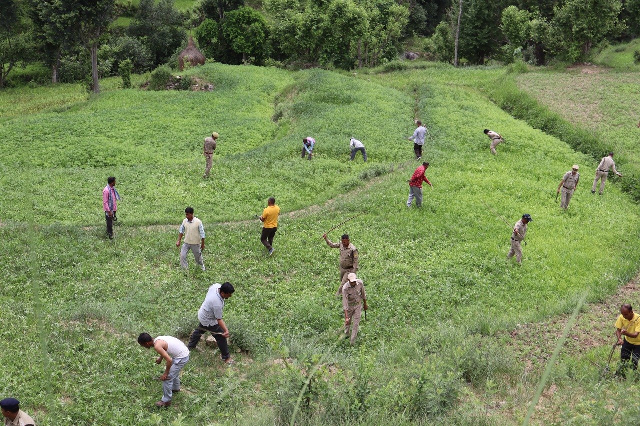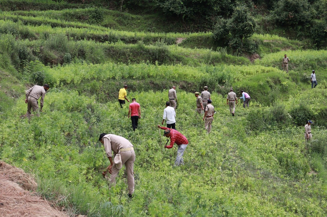 चम्पावत : थाना पाटी, एसओजी, वन विभाग व राजस्व विभाग की संयुक्त टीम द्वारा अवैध रूप से की गई भांग की लगभग 280 नाली खेती को नष्ट किया गया। पुलिस अधीक्षक अजय गणपति के निर्देशानुसार ड्रग फ्री देवभूमि अभियान 2025 के तहत क्षेत्राधिकारी चम्पावत/टनकपुर के पर्यवेक्षण में आज 19 जून 2025 को थाना पाटी एसओजी/वन विभाग/राजस्व विभाग की संयुक्त टीम द्वारा थाना पार्टी क्षेत्रान्तर्गत ग्राम जोगाबसान में लगभग 280 नाली भांग की खेती को नष्ट किया गया । इसके अतिरिक्त जागरूकता के तहत ग्रामीणों को भविष्य में भांग की खेती न करने व नशे से होने वाले दुष्परिणामों से अवगत कराया गया। भविष्य में भी अभियान जारी रहेगा।