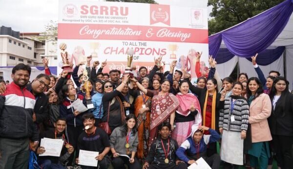 देहरादून। श्री गुरु राम राय विश्वविद्यालय (एसजीआरआरयू) की वार्षिक खेलकूद प्रतियोगिता खेलोत्सव-2024 का रंगारंग प्रस्तुतियों के साथ शनिवार को समापन हो गया। प्रतियोगिता के समापन अवसर पर छात्र-छात्राओं ने मनमोहक प्रस्तुतियां दीं। विश्वविद्यालय की ओर से विजेताओं को मैडल, पुरस्कार व प्रशस्ति पत्र देकर सम्मानित किया गया। श्री गुरु राम राय विश्वविद्यालय के कुलाधिपति श्रीमहंत देवेन्द्र दास जी महाराज ने सभी विजेताओं, छात्र-छात्राओं व खेलोत्सव-2024 के आयोजकों को सफल आयोजन के लिए बधाई व शुभकामनाएं दीं। शनिवार को श्री गुरु राम राय इंस्टीट्यूट ऑफ़ मेडिकल एण्ड हेल्थ साइंसेज़ के खेल मैदान पर पुरस्कार वितरण कार्यक्रम का शुभारंभ मुख्य अतिथि डाॅ. यशबीर दीवान, कुलपति श्री गुरु राम राय विश्वविद्यालय व डाॅ. अजय कुमार खण्डूड़ी, कुलसचिव श्री गुरु राम राय विश्वविद्यालय ने संयुक्त रूप से किया। एसजीआरआरयू की छात्राओं ने गणेश वन्दना की मनमोहक प्रस्तुति से कार्यक्रम का आगाज किया।
