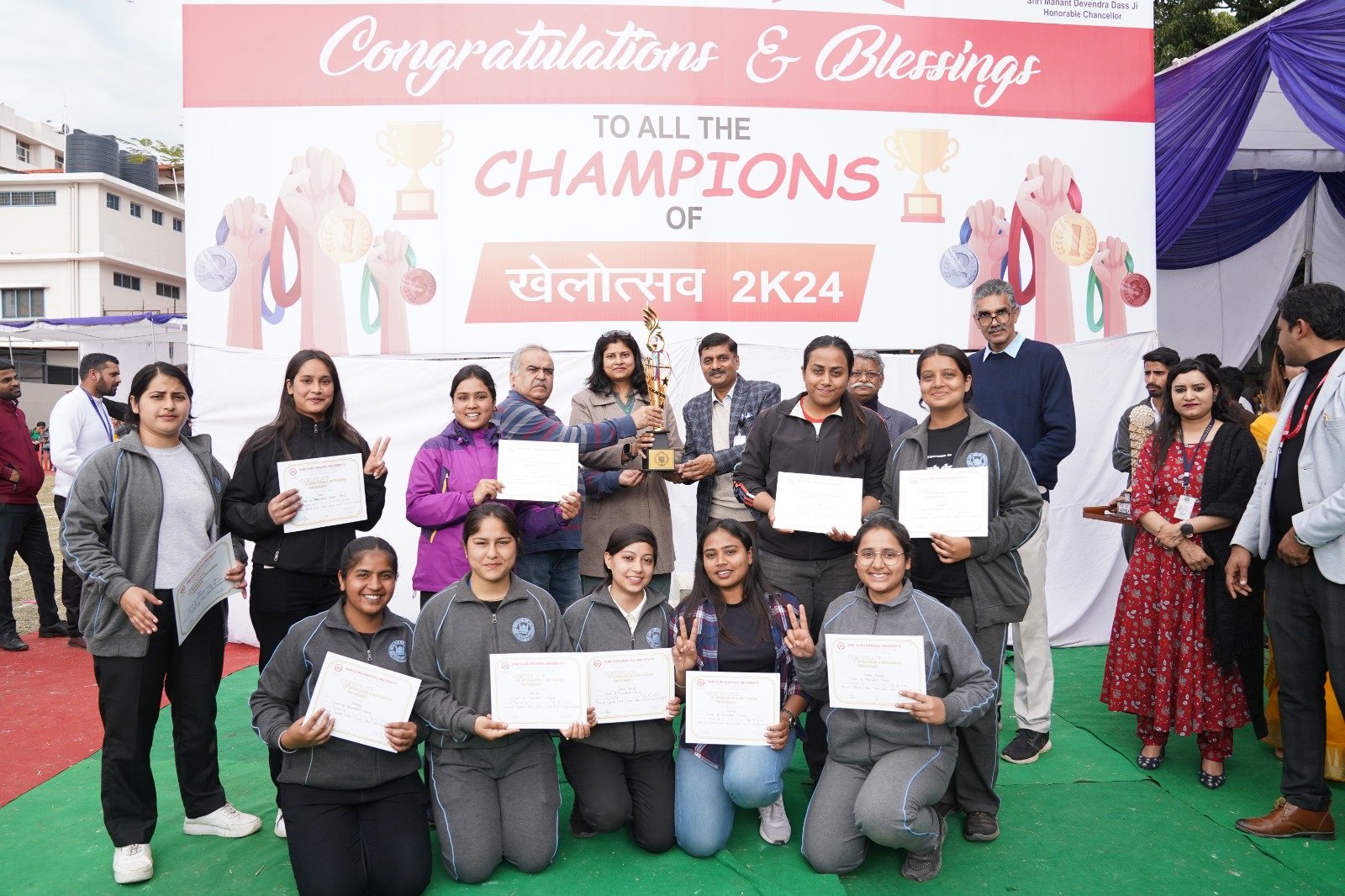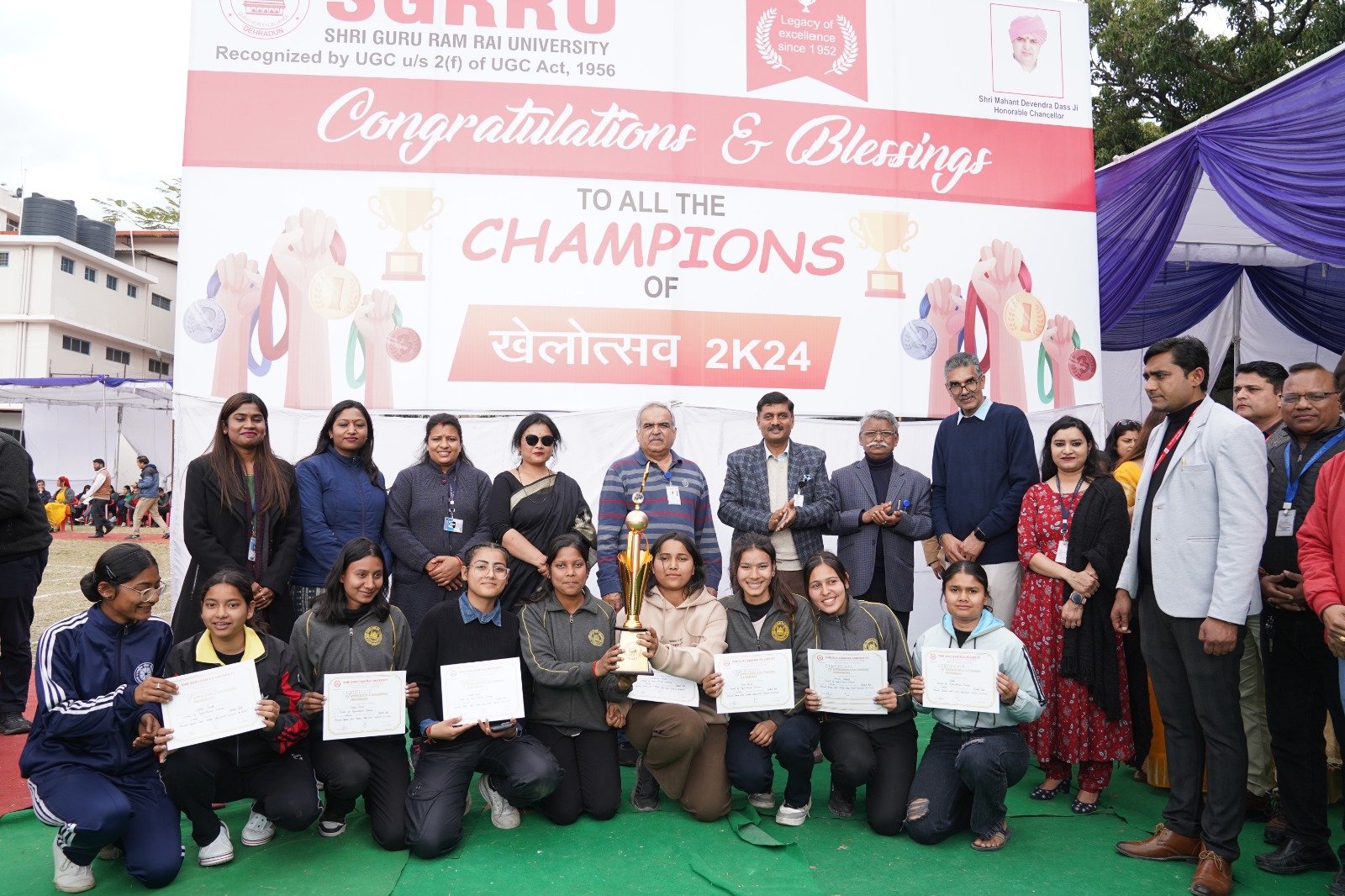 इस अवसर पर श्री गुरु राम राय विश्वविद्यालय खेलोत्सव-2024 के चेयरपर्सन डाॅ एम.ए.बेग, खेलोत्सव-2024 समन्वयक डाॅ. मनोज गहलोत, खेल अधिकारी एस.पी. जोशी, विश्वविद्यालय कोओर्डिनेटर डाॅ आर.पी. सिंह, मुख्य कुलानुशासक एवं प्रवक्ता मनोज तिवारी, डाॅ. आर.के.वर्मा, डाॅ. पुनीत ओहरी, डाॅ. अरुण कुमार, डाॅ. अनिल थपलियाल, डाॅ. कंचन जोशी, वैभव शर्मा, डाॅ. मनीष मिश्रा, डाॅ. दीपक सोम, डाॅ. मनवीर नेगी, डाॅ. मोनिका बंगाडी, इशा शर्मा, डाॅ. सोनिया गम्भीर आदि का विशेष सहयोग रहा।