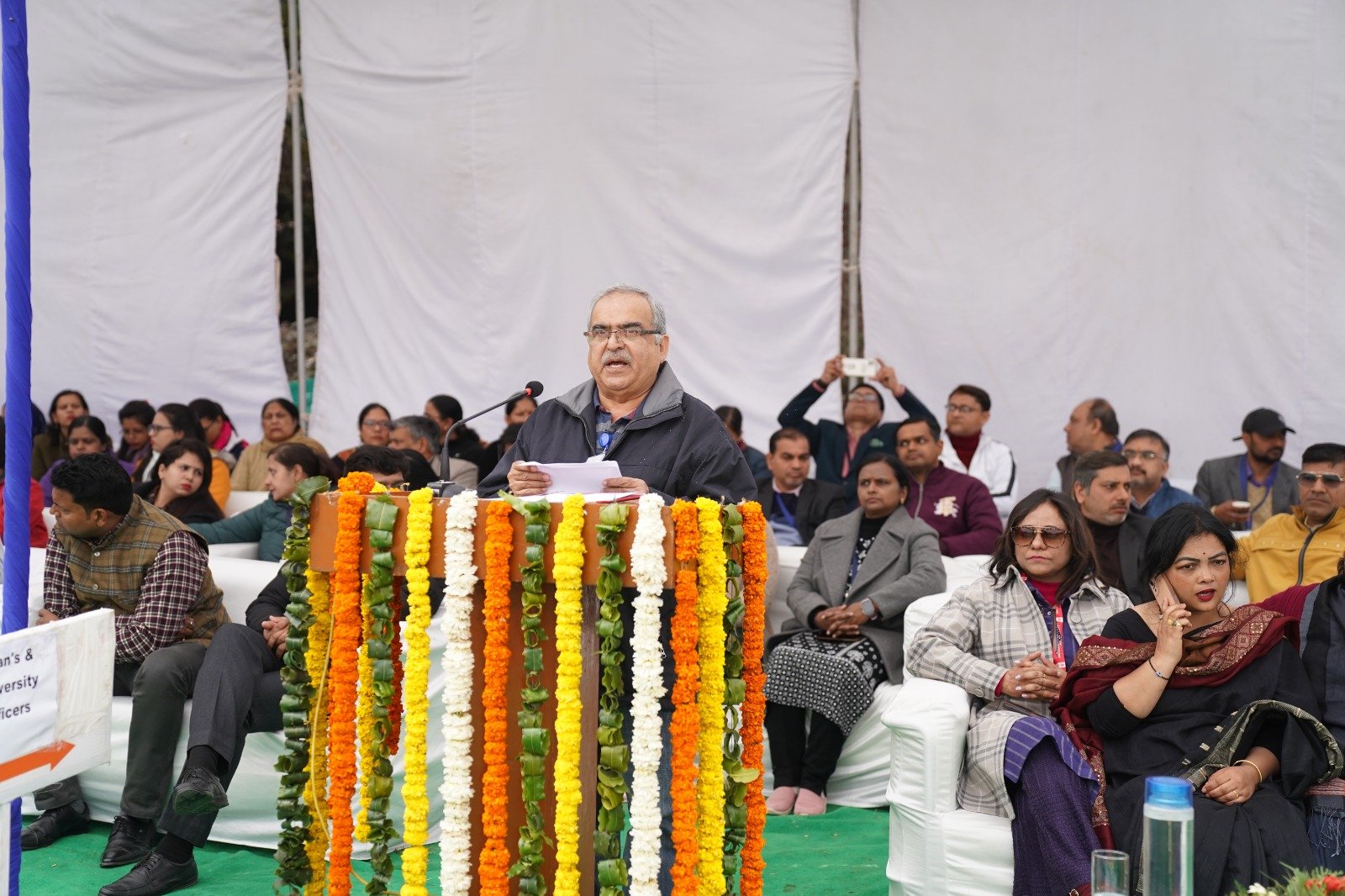 विश्वविद्यालय के कुलपति प्रो. डॉ यशवीर दीवान ने खेलोत्सव-2024 के सफल आयोजन के लिए बधाई देते हुए कहा कि छात्रों ने विश्वविद्यालय को गौरवान्वित किया है। उन्होंने विभिन्न प्रतियोगिताओं में प्रतिभाग करने वाले छात्र-छात्राओं का उत्साह वर्धन करते हुए कहा कि एक सच्चे खिलाड़ी को कभी भी हार जीत की भावना से खेल में प्रतिभाग नहीं करना चाहिए, बल्कि उन्हें अपनी क्षमताओं को पहचानना चाहिए और अपना श्रेष्ठतम प्रदर्शन करना चाहिए। उन्होंने कहा कि खेल में समर्पण और सीखने की ललक सबसे ज्यादा जरूरी है। इस मौके पर कुलपति ने बताया कि विश्वविद्यालय को आईसीएआर की मान्यता मिल गई है जिसके लिए उन्होंने विश्वविद्यालय को शुभकामनाएं प्रेषित की। वहीं उन्होंने विश्वविद्यालय को डिपार्टमेंट ऑफ साइंटिफिक एंड इंडस्ट्रियल रिसर्च आर्गनाइजेशन (डीएस आईआर सीरो) की मान्यता मिलने पर हर्ष व्यक्त किया। यह विश्वविद्यालय के लिए हर्ष का क्षण है। इस कारण विश्वविद्यालय में रिसर्च संबंधी गतिविधियों में और अधिक गति आएगी।