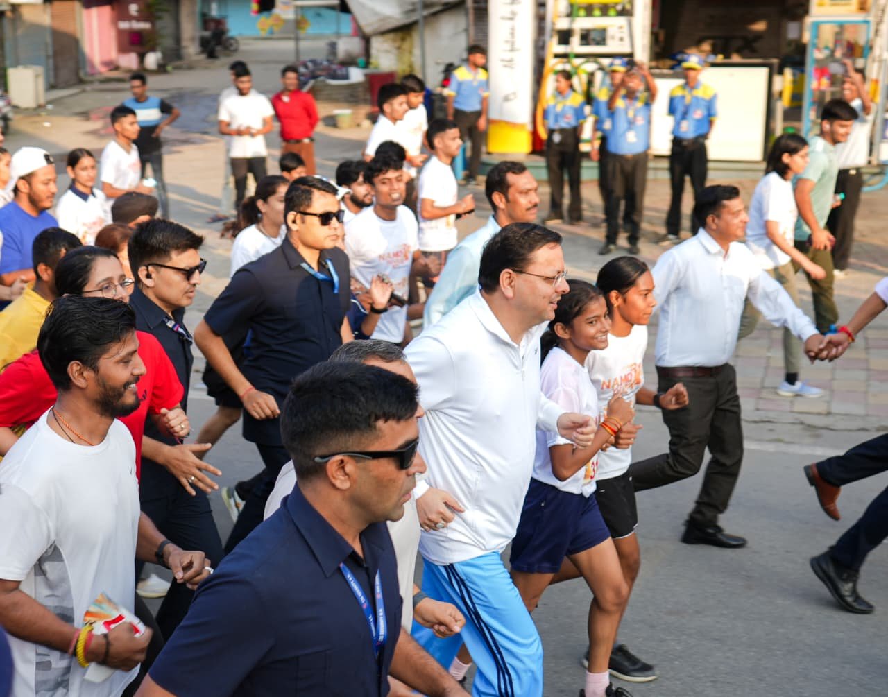 देहरादून : मुख्यमंत्री पुष्कर सिंह धामी ने रविवार को घंटाघर, देहरादून में ‘सेवा पखवाड़ा’ कार्यक्रम के अंतर्गत आयोजित ‘नमो युवा रन’ का फ्लैग ऑफ किया। इस अवसर पर उन्होंने प्रतिभागियों के साथ दौड़ में सम्मिलित होकर युवाओं का उत्साहवर्धन भी किया।