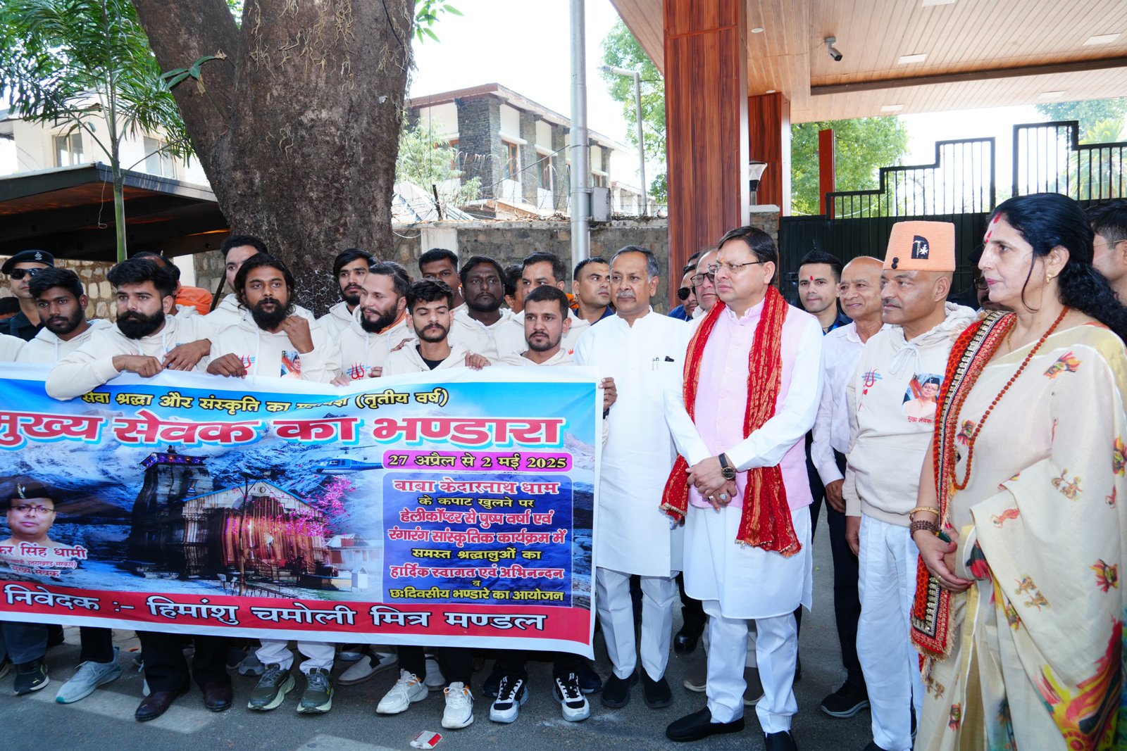 देहरादून : मुख्यमंत्री पुष्कर सिंह धामी ने रविवार को मुख्यमंत्री कैंप कार्यालय से चारों धामों में “मुख्य सेवक भंडारा” के लिए जाने वाले सेवादारों की टीम को हरी झंडी दिखाकर रवाना किया। “मुख्य सेवक भंडारा” के तहत चार धाम यात्रा में जाने वाले श्रद्धालुओं के लिए विभिन्न स्थानों पर भोजन की व्यवस्थाएं की जाएगी।