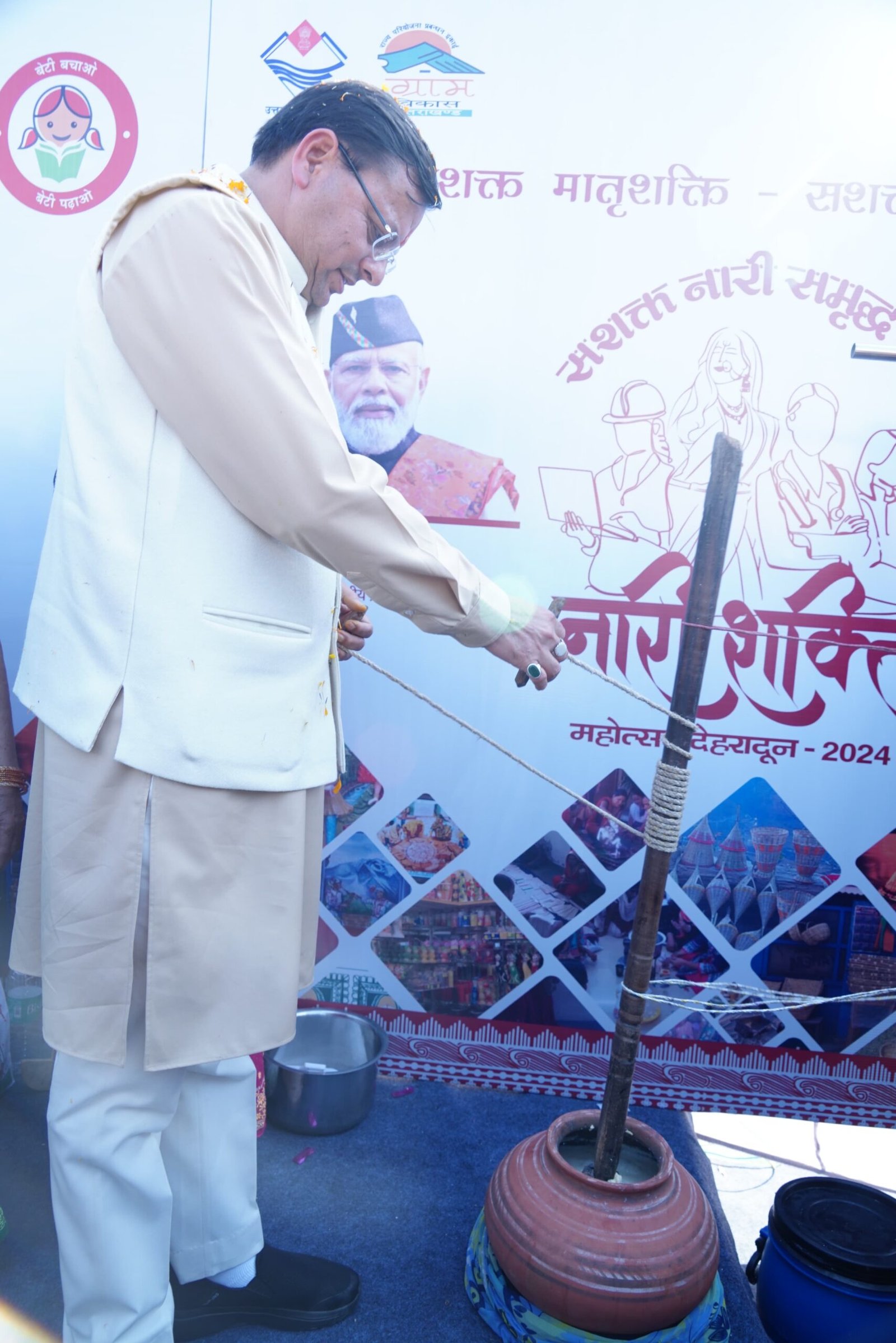 देहरादून : मुख्यमंत्री पुष्कर सिंह धामी ने गुरुवार को देहरादून के बन्नू मैदान में आयोजित नारी शक्ति महोत्सव में प्रतिभाग किया। इस अवसर पर उन्होंने 1055.57 करोड़ रुपये की कुल 600 योजनाओं का लोकार्पण एवं शिलान्यास किया। इनमें 617.05 करोड़ की 270 योजनाओं का लोकार्पण एवं 438.52 करोड़ की 330 योजनाओं का शिलान्यास किया गया। कार्यक्रम स्थल पर मुख्यमंत्री ने सिलाई-कड़ाई का प्रदर्शन कर रही महिलाओं के बीच जाकर उनका उत्साहवर्धन किया। मुख्यमंत्री ने कार्यक्रम की शुरुआत में कन्या पूजन किया, जिसके बाद उन्होंने विभिन्न क्षेत्रों में स्थान बनाने वाली महिलाओं की भी हौसलाअफजाई की।