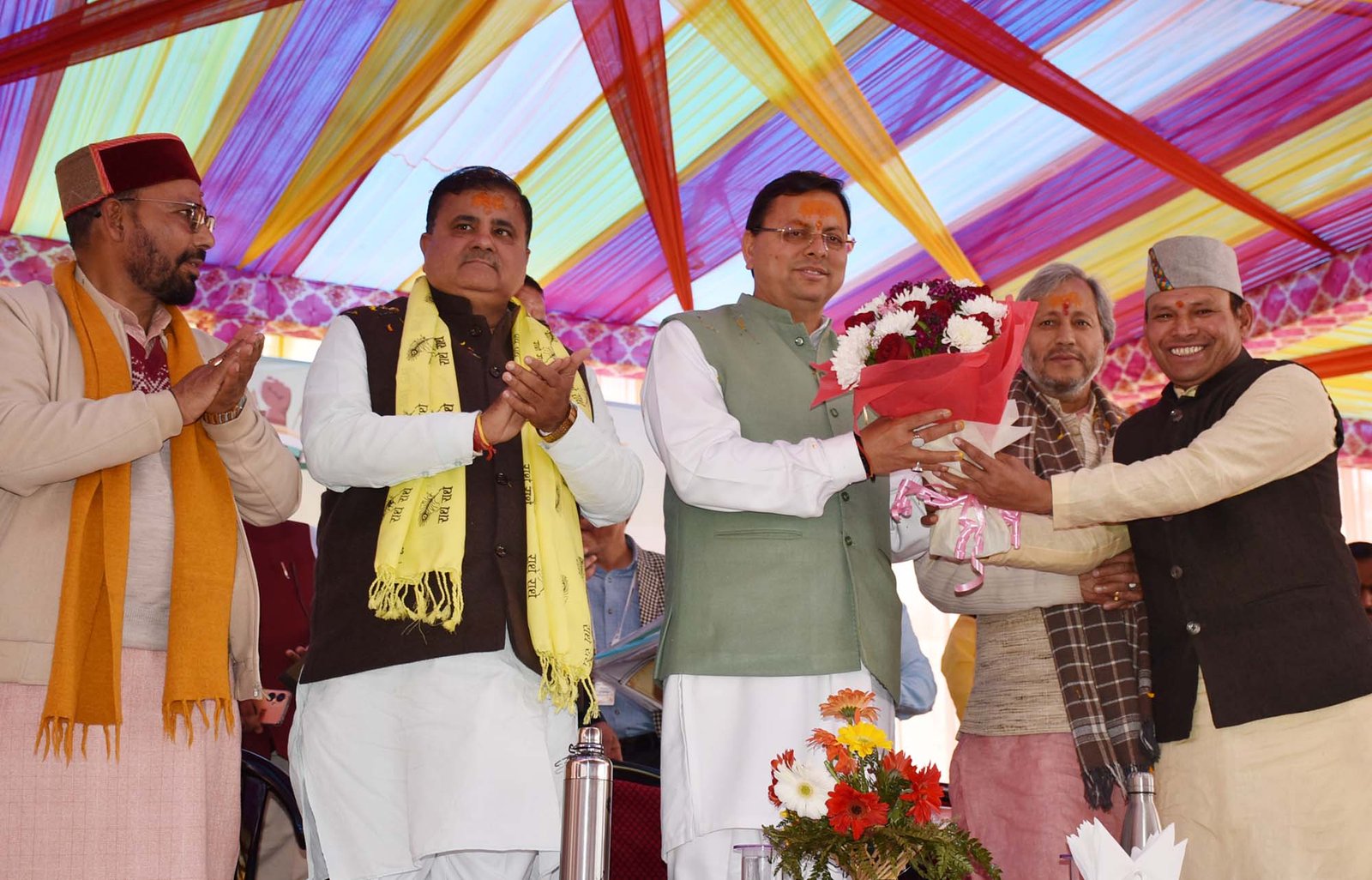 गोपेश्वर : मुख्यमंत्री पुष्कर सिंह धामी ने बुधवार को जनपद चमोली के पुलिस मैदान गोपेश्वर में आयोजित ‘‘लाभार्थी सम्मान समारोह’’ में प्रतिभाग करते हुए ₹ 229.3 करोड़ की विभिन्न विकास योजनाओं का लोकापर्ण एवं शिलान्यास किया। जिसमें 44.13 करोड़ की योजनाओं का लोकापर्ण एवं 185.17 करोड़ की योजनाओं का शिलान्यास शामिल है। इस दौरान मुख्यमंत्री ने जनपद के विकास के लिए कई घोषणाएं भी की जिसमें हापला-धोतीधार मोटर मार्ग निर्माण कार्य को शीघ्र पूरा किए जाने, दशोली ब्लाक में गोपेश्वर मंदिर मार्ग से बैतरणी – सिरखोमा- सेंटुणा – बैरागणा मोटर मार्ग के किलोमीटर एक से लेकर सेटुणा तक मोटर मार्ग का निर्माण हेतु शासकीय एवं वित्तीय स्वीकृति प्रदान की जाने, कर्णप्रयाग में लामबगड के अंतर्गत गंगानगर माई मंदिर से भैरव तोक तक रामगंगा नदी पर झूला पुल का निर्माण किए जाने, थराली विधानसभा में चार विकास खंडों में गौ-संरक्षण सेवा की स्थापना किए जाने एवं थराली कुलसारी में सेंटर ऑफ एक्सीलेंस की जनहित में स्वीकृति दी जाने की घोषणा शामिल है।