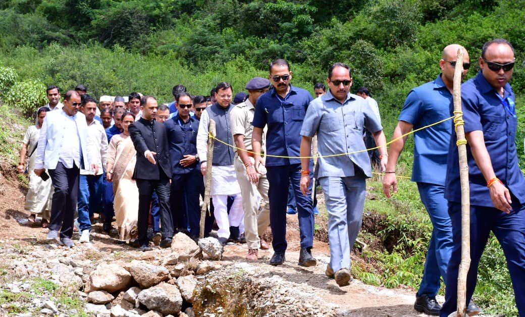 - हेलीपैड से पैदल चलकर लिया आपदा प्रभावित श्रेत्र का जायज़ा।