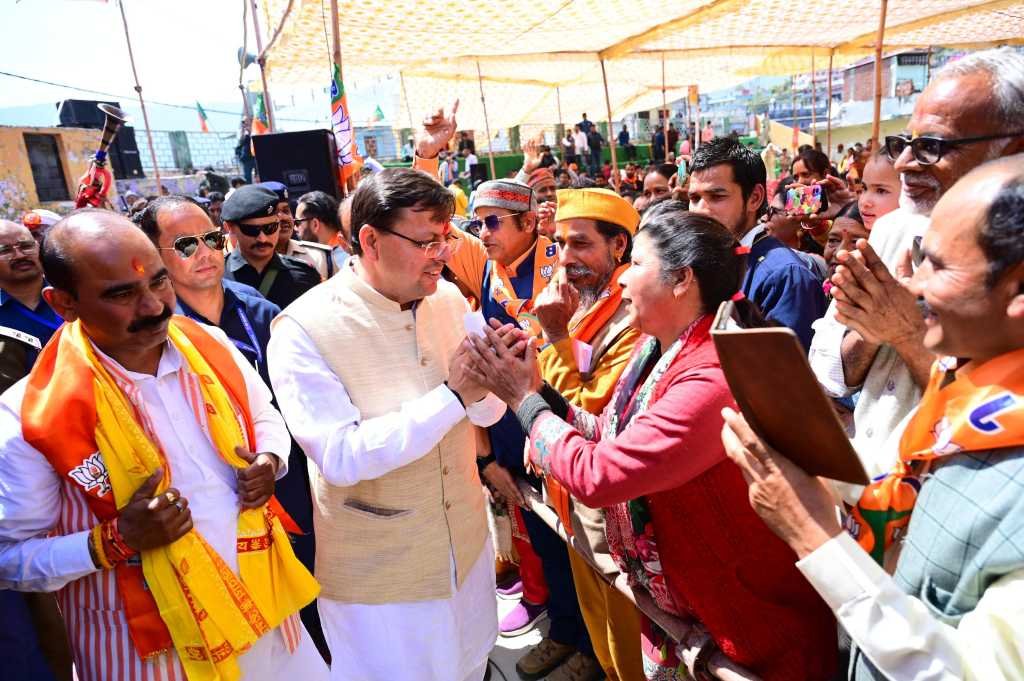 इस अवसर पर रामलीला मैदान में आयोजित जनसभा को संबोधित करते हुए मुख्यमंत्री पुष्कर सिंह धामी ने भाजपा प्रत्याशी एवं सांसद अजय टम्टा को अधिक से अधिक वोटों से जीताने की अपील करते हुए कहा कि मुझे प्रदेश के मुख्य सेवक की जो यह जिम्मेदारी मिली है वह आप सभी और प्रधानमंत्री नरेंद्र मोदी एवं शीर्ष नेतृत्व के आशीर्वाद से मिली है। उन्होंने कहा कि हम आपके आशीर्वाद से ज्यादा से ज्यादा विकास के कार्य कर रहे हैं और इस दौरान बहुत सारे निर्णय भी लिए हैं। आज तक जो कार्य उत्तराखंड बनने के बाद नहीं हुए थे, उन्हें हमारी सरकार कर रही है। उन्होंने कहा कि इस क्षेत्र से मेरा विशेष लगाव है। उन्होंने जनता का आह्वान किया कि पिथौरागढ़-अल्मोड़ा लोकसभा क्षेत्र में आने वाली सभी 14 विधानसभा सीटों पर बड़े मार्जिन से प्रत्याशी को जिताएं। उन्होंने कहा कि मुझे पूर्ण विश्वास है कि उत्तराखंड की पाँच की पाँच सीटों पर भाजपा का परचम लहराएगा। उन्होंने कहा कि हमारी सरकार, सुशासन के मूल मंत्र के साथ आगे बढ़ रही है और आदरणीय प्रधानमंत्री जी के नेतृत्व में विकास के नए आयाम स्थापित किये जा रहे हैं। हमारा लक्ष्य पूर्ण रूप से स्पष्ट है, यह लक्ष्य है उत्तराखंड के विकास का, उत्तराखंड की महिलाओं के विकास का, युवाओं के लिए संभावनाओं से भरे आकाश का। उन्होंने कहा कि हमारे फैसलों में हमारा यह भाव स्पष्ट रूप से नजर आता है। आपने देखा होगा कि भर्ती घोटालों पर हमने प्रहार किया और देश का सबसे सख्त नकल विरोधी कानून लेकर आये। इसके चलते आज पारदर्शिता के आधार पर युवाओं का सरकारी नौकरियों में चयन हो रहा है। उत्तराखंड में पहली बार यह इतिहास बना जब किसी पार्टी की लगातार दूसरी बार सरकार बनी। हमने समान नागरिक सहिंता के साथ ही धर्मांतरण का कानून, दंगा विरोधी कानून भी लागू किया है। इस प्रकार के हमने कई निर्णय लिए हैं। गरीबों को तीन नि:शुल्क सिलिंडर दिए जा रहे हैं, महिलाओं को सरकारी नौकरियों में 30 प्रतिशत आरक्षण दिया जा रहा है। देवभूमि में लैंड जेहाद पर भी हमने कठोर कार्रवाई की है। ऐसे निर्णय लिए हैं जो आने वाले दिनों में मील का पत्थर साबित होंगे। वर्तमान में प्रदेश में केंद्र की सरकार से भरपूर सहयोग मिल रहा है। केंद्र ने हमारे लिए डेढ़ लाख करोड़ से ज्यादा की धनराशि स्वीकृत की है। मेडिकल कॉलेज, हेली सेवाओं का विस्तार इस क्षेत्र में तेजी से हो रहा है, सड़कों का निर्माण व चौड़ीकरण हो रहा है। मानसखंड मंदिर मिशन के अंतर्गत कुमाऊँ के मंदिरों का सर्किट बनाया जा रहा है। पिछले दिनों हमारे प्रधानमंत्री जी आदि कैलाश आदि स्थानों पर गए, जिस कारण इन क्षेत्रों को विश्व स्तर पर पहचान मिली है। पहले केवल योजनाएं बनाई जाती थी, लेकिन आज हर काम को पूरा किया जाता ह