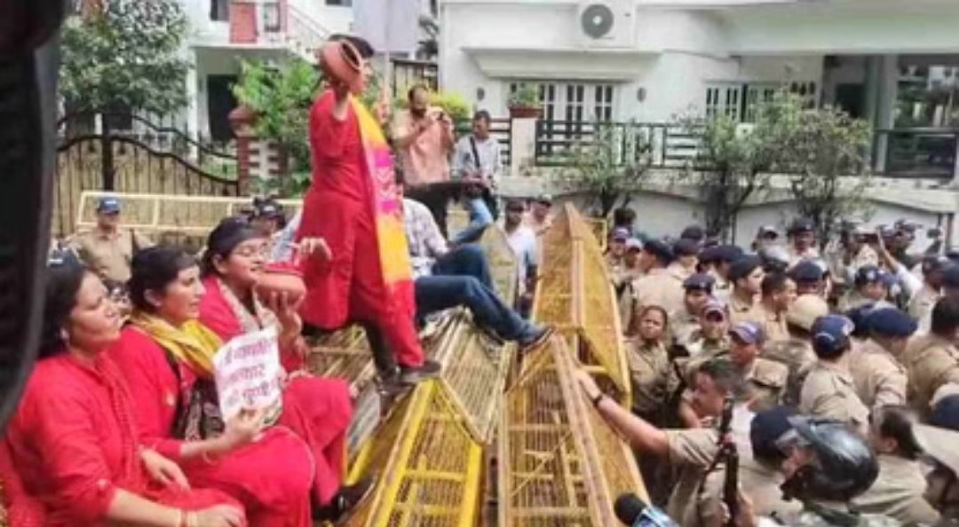 महिलाओं के खिलाफ बढ़ते अपराधों को लेकर कांग्रेस का भाजपा कार्यालय पर प्रदर्शन