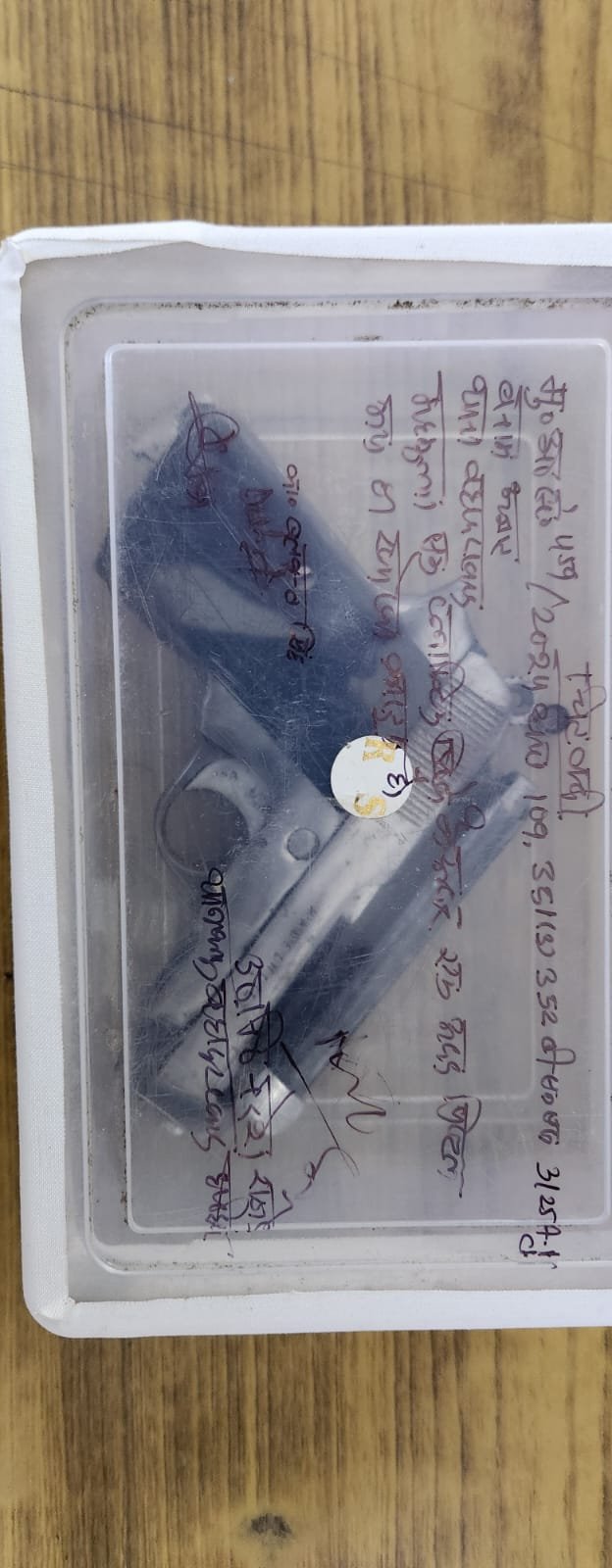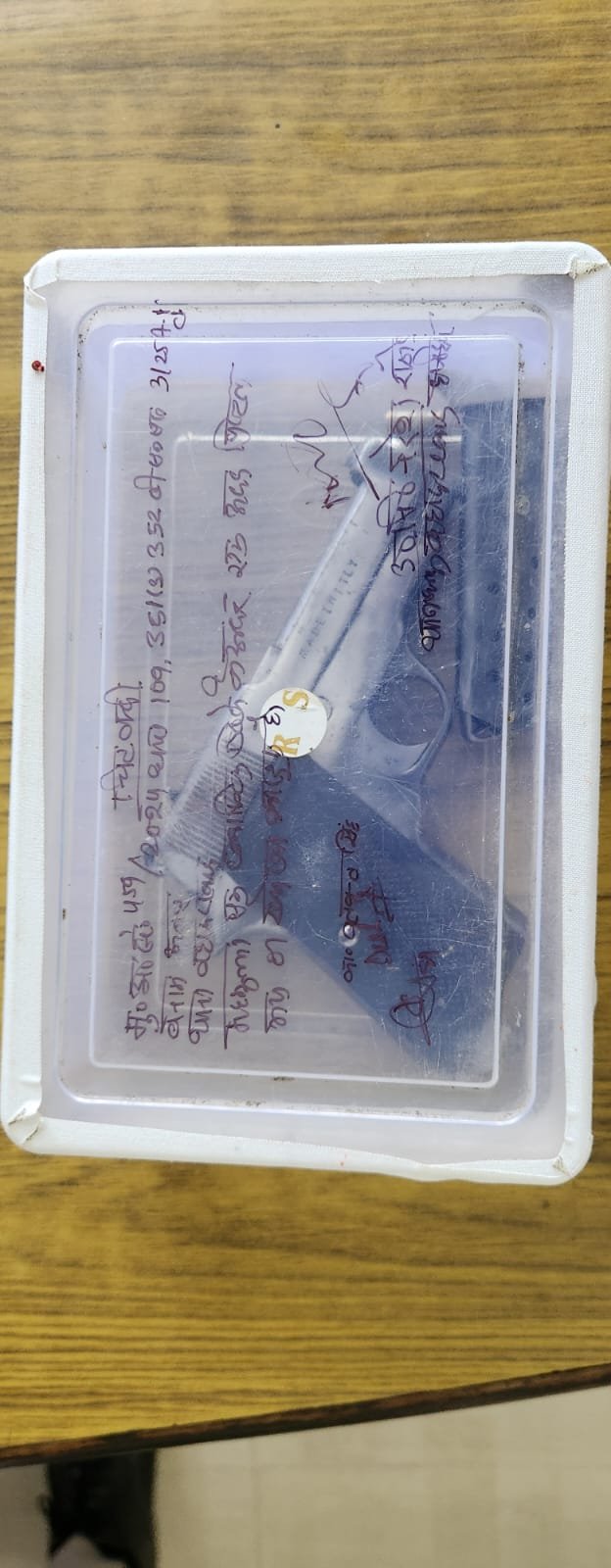 • घटना में प्रयुक्त एक अदद पिस्टल .32 बोर मय खोखा कारतूस 01 जिंदा कारतूस 04 और 01 मोटर साईकिल बिना नंबर।