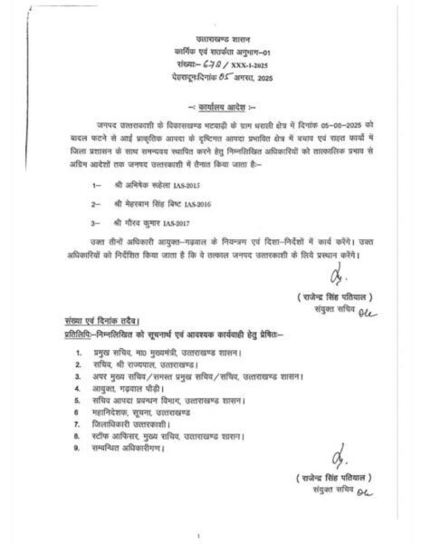 Home » Blog » धराली आपदा: बड़े पैमाने पर राहत-बचाव के लिए अधिकारियों की तैनाती, अब तक जारी हुए ये आदेश