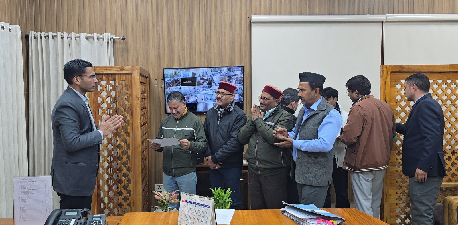 जिलाधिकारी द्वारा राज्य आंदोलनकारियों के साथ बुलाई गई बैठक में राज्य आंदोलनकारी स्व0 सूर्य प्रसाद कोठारी पुत्र स्व0 श्री रामस्वरूप कोठारी का प्रकरण जिस पर जिलाधिकारी ने प्रभारी अधिकारी कलेक्टेªट को कार्यवाही के निर्देश दिए थे। आज उनके पुत्र अनिल कोठारी को सम्मान पत्र दिया गया। आंदोलनकारियों उनकी सुद लेनेे पर डीएम का धन्यवाद ज्ञापित किया गया। जिलाधिकारी ने कहा कि आंदोलनकारियों द्वारा उठाये गए चिन्हिकरण की मांग, पेंशन बढाने आदि सभी मांगों को शासन को प्रेषित किया गया है। जिलाधिकारी की कार्यशैली पर राज्य आंदोलनकारी ने उन्हें साधुवाद दिया। इस अवसर राज्य आदोंलनकारी केशव उनियाल, जगमोहन सिंह नेगी, प्रदीप कुकरेती, अनिल कोठारी सहित आंदोलनकारी उपस्थित रहे।