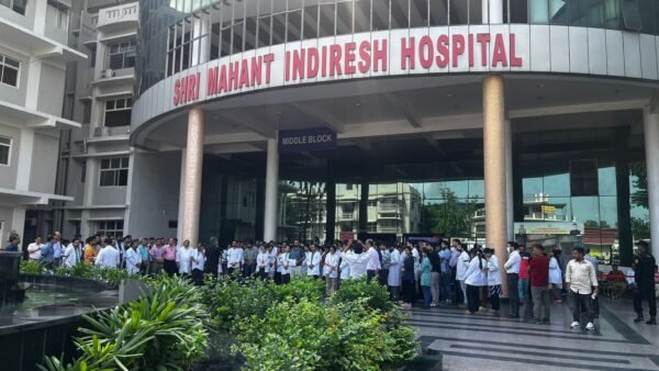 श्री महंत इन्दिरेश अस्प्ताल में डाॅक्टरों ने काली पट्टी बांधकर जताया विरोध