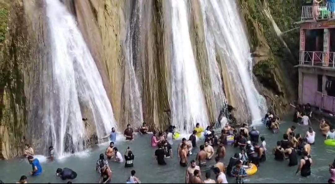 टिहरी : चारधाम यात्रा के दो धाम यमुनोत्री और गंगोत्री से वापस लौट रहे यात्री जनपद टिहरी गढ़वाल के प्रसिद्ध पर्यटक स्थल केम्प्टी वॉटरफॉल के ठंडे पानी में डुबकी लगाकर अपनी यात्रा की थकान को मिटा रहे हैं। साथ ही अन्य राज्यों से गर्मियों की छुट्टियां बिताने मसूरी पहुंचे रहे पर्यटक भी केंपटी वॉटर फॉल का आनंद ले रहे हैं। बीते शनिवार को बड़ी संख्या में यात्री एवं पर्यटक केम्प्टी वॉटरफॉल पहुंचे। जहां ऊंची पहाड़ी से गिर रहे पानी के झरने को देखकर पर्यटक काफी उत्साहित नजर आ रहे हैं, वहीं केम्प्टी वॉटरफॉल का आनंद लेकर कई पर्यटक यहां के स्थानीय पहाड़ी फल आड़ू, चुलु, पुलम, मक्की के भुट्टे का भी खूब आनंद ले रहे हैं। महाराष्ट्र के नासिक डिस्ट्रिक्ट से पहुंचे नंद कुमार वाग ने बताया कि केम्प्टी वाटरफॉल का दृश्य हमें बहुत ही पसंद आया है। उन्होंने बताया कि झरने तक पहुंचाने की व्यवस्था बहुत ही अच्छे ढंग से व्यवस्थित तरीके से चल रही है। साथियों ने बताया कि यहां के पहाड़ी व्यंजनों का स्वाद वाकई में स्वादिष्ट है और पौष्टिक भी है।