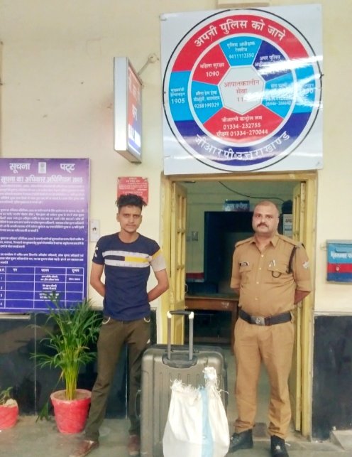 काठगोदाम । सोमवार को ट्रेन संख्या 15013 रानीखेत एक्सप्रेस में यात्रा के दौरान एक यात्री का ट्राली बैग व अन्य सामान भूलवश ट्रेन में ही छूट गया था । बैग व यात्री के बावत जानकारी एवं मालूमात करने पर उक्त बैग मौहम्मद साजिद शेख निवासी मेरठ उत्तरप्रदेश हाल निवासी भीमताल जनपद नैनीताल का होना ज्ञांत हुआ । थाना जीआरपी काठगोदाम पर नियुक्त हेड कांस्टेबल राजकुमार व कांस्टेबल दिनकर बड़थ्वाल ने उक्त यात्री का पता लगाकर यात्री से सम्पर्क कर यात्री का ट्राली बैग एवं अन्य सामान सकुशल यात्री के सुपुर्द किया । यात्री ने उत्तराखण्ड जीआरपी पुलिस के सहायतार्थ किये गये कार्य की सराहना की एवं आभार व्यक्त किया ।