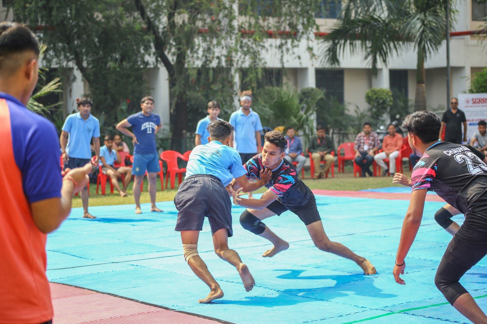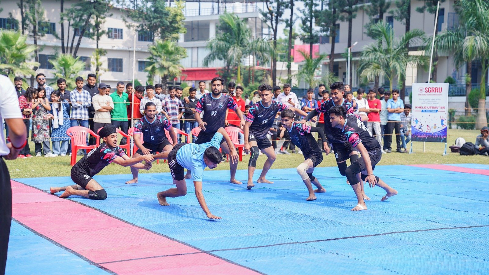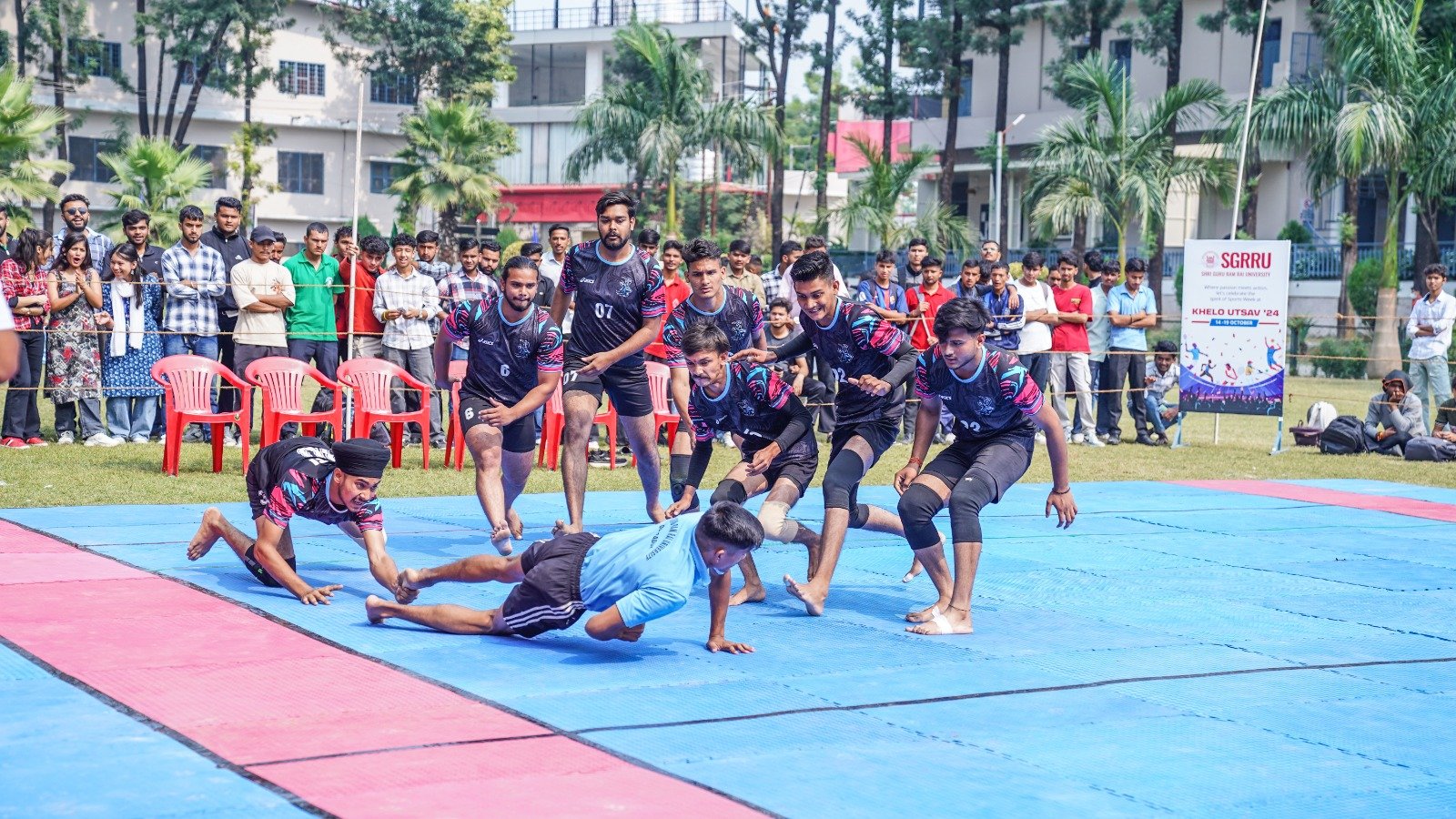 देहरादून। श्री गुरु राम राय विश्वविद्यालय (एसजीआरआरयू) की वार्षिक खेलकूद प्रतियोगिता खेलोत्सव का पाॅचवा दिन फुटबाॅल, कबड्डी, खो-खो, डिस्कस थ्रो, भाला फेंक, गोला फेंक, लंबी कूद, ट्रिपल जंप एवम् क्रिकेट प्रतियोगिताओं के नाम रहा। स्कूल ऑफ ह्यूमैनिटीज ने रोमांचक मुकाबले में फुटबाल का फाइनल जीता। शुक्रवार को श्री गुरु राम राय विश्वविद्यालय के अलग-अलग खेल मैदानों पर चौथे दिन की प्रतियोगिताओं का शुभारंभ डॉ. अजय कुमार खण्डूड़ी, कुलसचिव एसजीआरआर विश्वविद्यालय, डॉ. आर.पी.सिंह, समन्वयक एसजीआरआरयू, खेलोत्सव के सचिव सत्य प्रकाश जोशी, डॉ. पुनीत ओहरी, डॉ. दीपक सोम, डॉ. वैभव शर्मा ने संयुक्त रूप से किया।