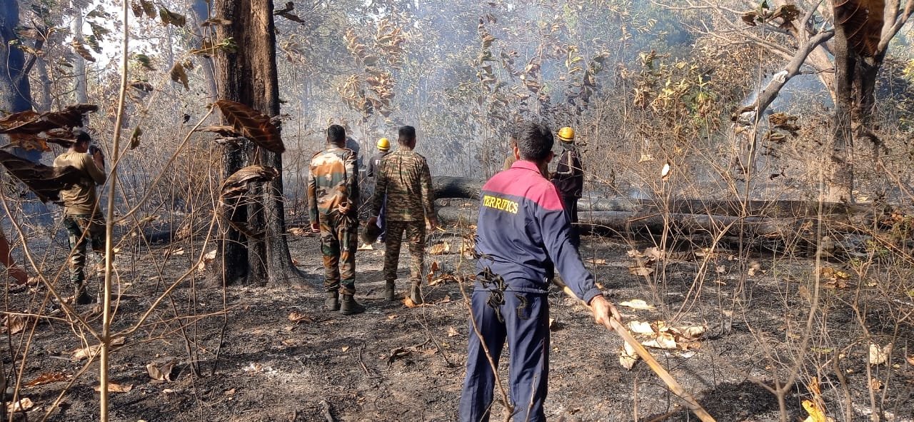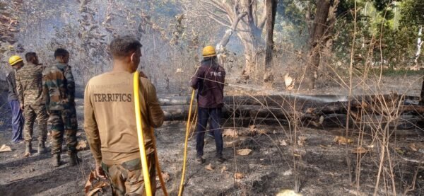 चम्पावत : अग्निशमन टीम टनकपुर द्वारा त्वरित कार्यवाही करते हुए बनबसा आर्मी कैंट के अंदर जंगल में लगी आग को बुझाया गया है। पुलिस अधीक्षक जनपद चंपावत अजय गणपति के निर्देशानुसार तथा पुलिस उपाधीक्षक चंपावत/टनकपुर के पर्यवेक्षण में जनपद चम्पावत में अग्नि व अन्य प्रकार की दुर्घटनाओं की रोकथाम करते हुए त्वरित कार्यवाही हेतु अग्निशमन प्रभारियों को निर्देशित किया गया है। उक्त के क्रम आज 05 अप्रैल 2024 को जनपद चम्पावत के अग्निशमन केंद्र टनकपुर क्षेत्रान्तर्गत बनबसा आर्मी कैंट के अंदर जंगल में आग लगने की सूचना पर अग्निशमन केन्द्र टनकपुर के जवानों द्वारा तत्काल मौके पर पहुचकर बनबसा आर्मी कैंट के अंदर जंगल में लगी आग को पूर्णत: बुझाया गया। अग्निशमन टीम व आर्मी टीम ने त्वरित कार्यवाही से आग को अन्यत्र फैलने व होने वाली वन संपदा की हानि से बचाया गया।