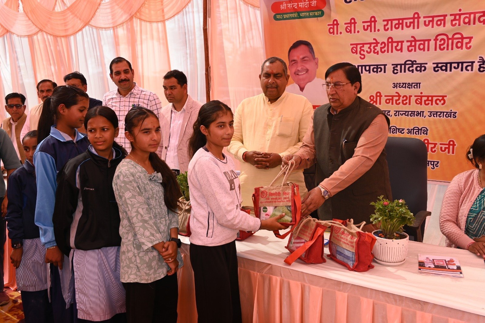 देहरादून : जन जन की सरकार, जन-जन के द्वार कार्यक्रम के अंतर्गत सांसद नरेश बंसल की अध्यक्षता में शुक्रवार को सहसपुर ब्लाक स्थित सांसद आदर्श ग्राम हरियावाला कलां में वृहद बहुउद्देशीय शिविर आयोजित किया गया। इस अवसर पर विशेष रूप से वीबी-जी रामजी योजना के संबंध में विस्तृत जानकारी उपलब्ध कराई जाएगी, ताकि अधिक से अधिक नागरिक योजना का लाभ प्राप्त कर सकें। इस दौरान सहसपुर विधायक सहदेव सिंह पुंडीर सहित अन्य जनप्रतिनिधि एवं वरिष्ठ अधिकारी भी मौजूद रहे।