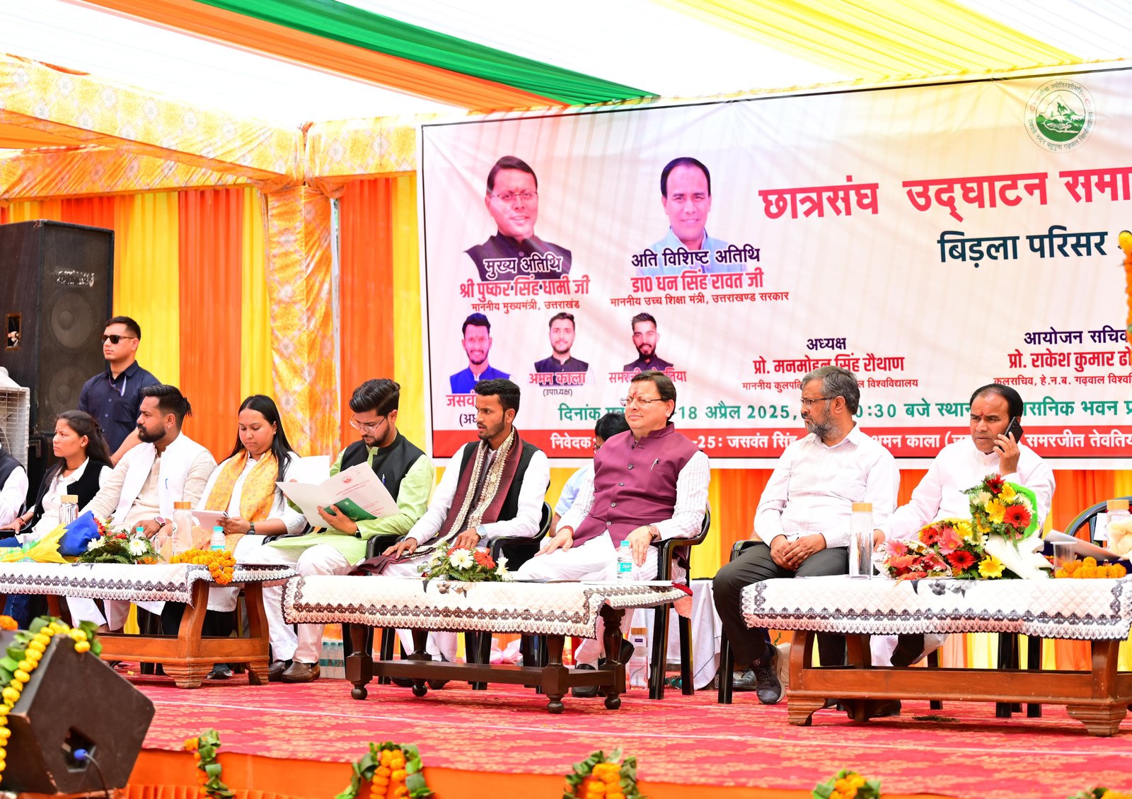 श्रीनगर : मुख्यमंत्री पुष्कर सिंह धामी ने शुक्रवार को हेमवती नंदन बहुगुणा गढ़वाल केंद्रीय विश्वविद्यालय परिसर, श्रीनगर में आयोजित छात्रसंघ शुभारंभ समारोह में प्रतिभाग किया। मुख्यमंत्री पुष्कर सिंह धामी ने कहा कि राज्य सरकार विश्वविद्यालयों के विकास के लिए पूर्ण रूप से प्रतिबद्ध है। राज्य सरकार विभिन्न नवीन कार्य योजनाओं के माध्यम से उत्तराखंड को प्रगति के पथ पर आगे बढ़ा रही है। उन्होंने कहा उत्तराखंड देश का पहला राज्य है जिसने यूसीसी कानून को लागू किया है, यह सभी प्रदेशवासियों के लिए गर्व की बात है। बीते साढ़े तीन सालों में राज्य सरकार ने 22 हजार से अधिक युवाओं को सरकारी नौकरियां दी है। राज्य की बेरोजगारी दर में 4.4 प्रतिशत की कमी आई है। उन्होंने कहा उत्तराखंड राज्य ने नीति आयोग द्वारा जारी सतत विकास लक्ष्यों की सूची में देश में प्रथम स्थान हासिल किया है।