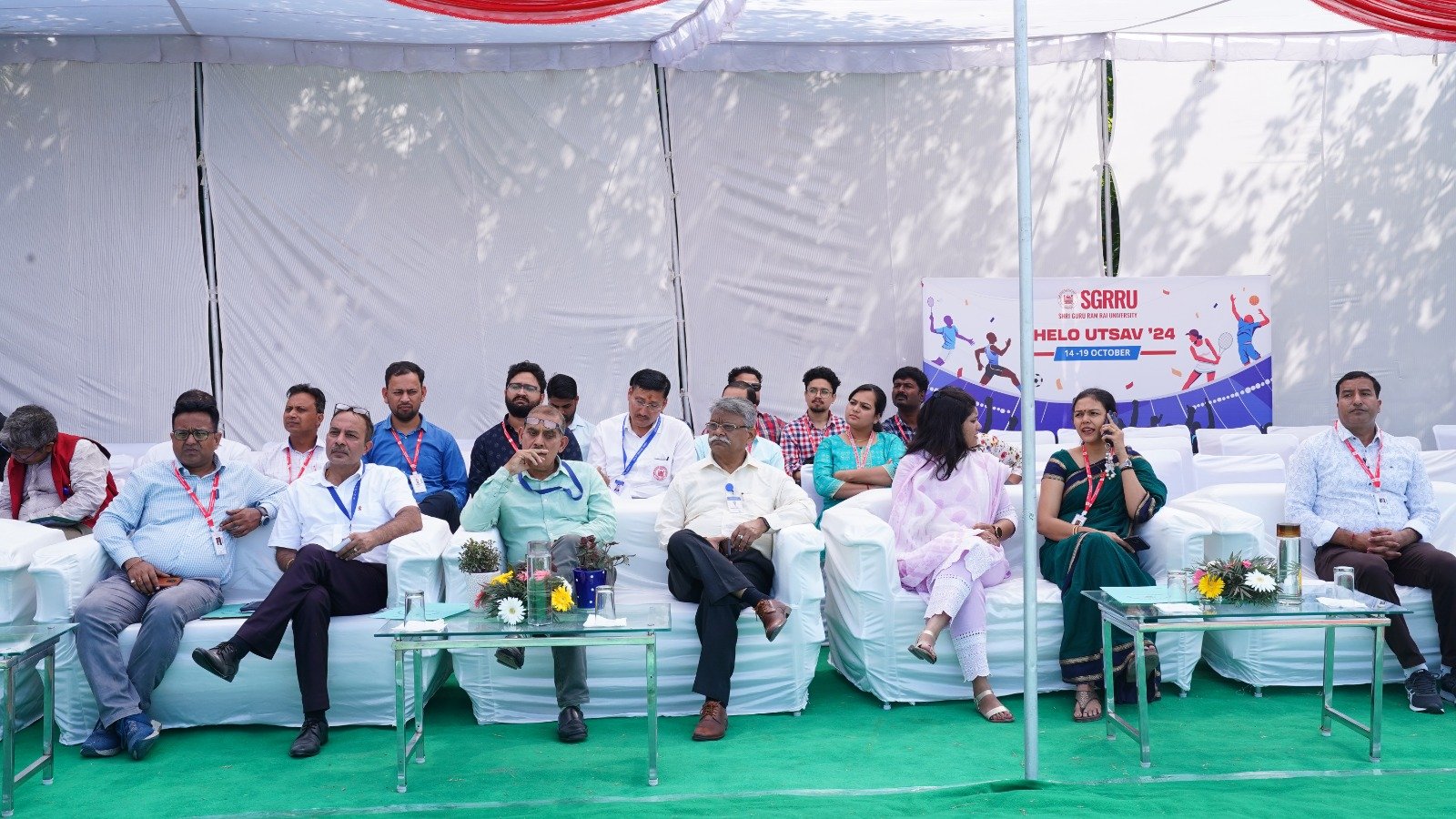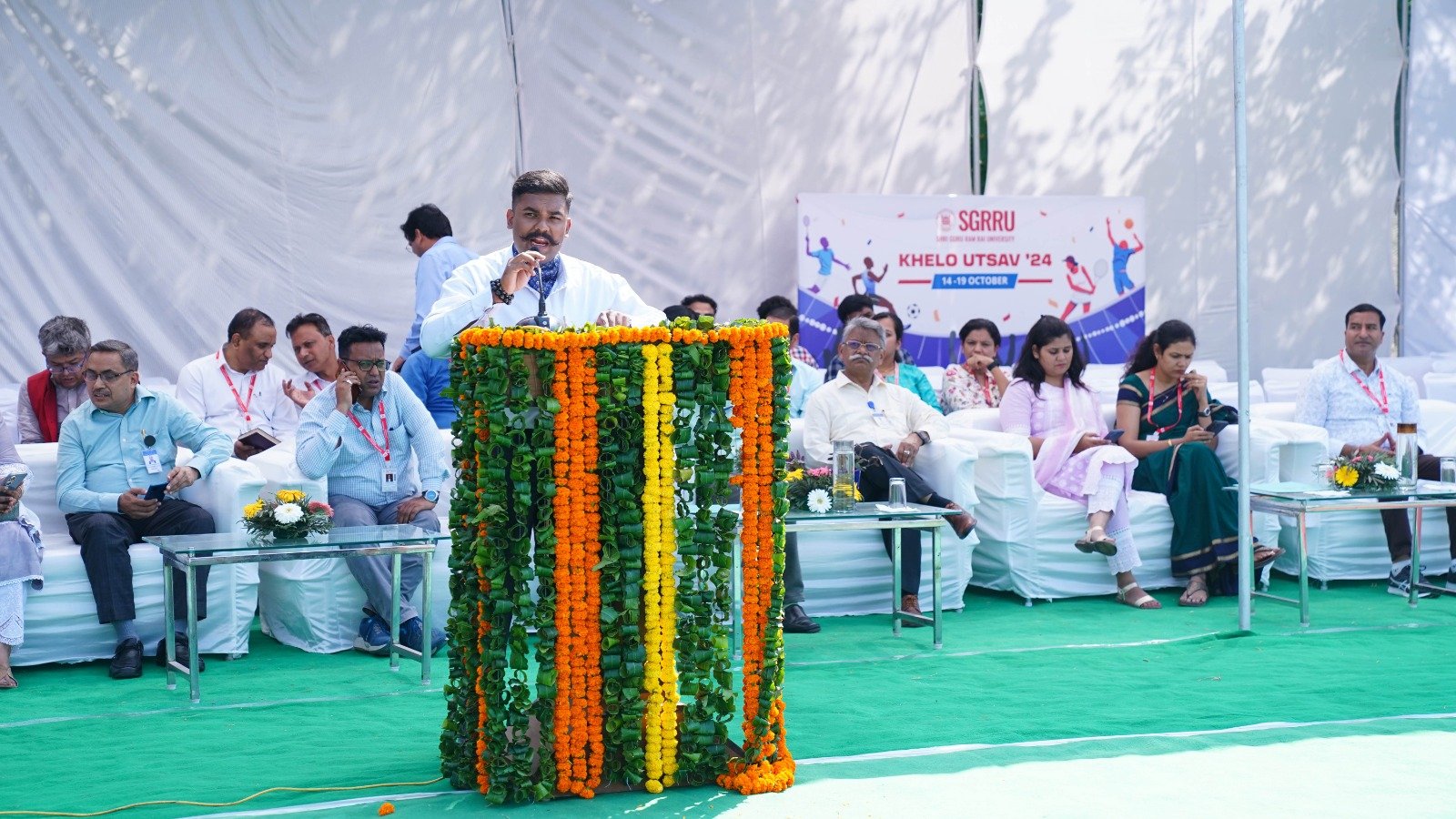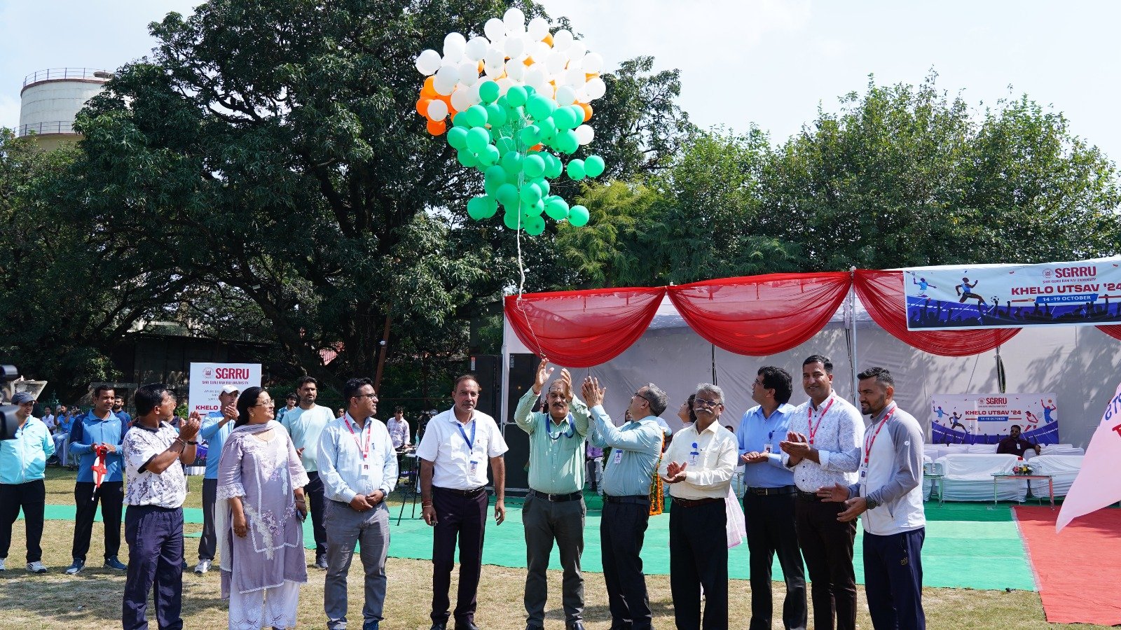 उ्दघाटन समारोह में विश्वविद्यालय के योग के छात्र-छात्राओं द्वारा की गई योग प्रस्तुति की भूरी भूरी प्रशंसा हुई। छात्र-छात्राओं ने योग आसनों के द्वारा मानसिक व शारीरिक संतुलन का शानदार संदेश दिया। आईटीबीपी के बैंड द्वारा सारे जहां से अच्छा हिन्दोस्तां हमारा गीत की मधुर धुन बजाई गई। एसजीआरआरयू के 11 संघटक काॅलेजों के छात्र-छात्राओं ने बैंड की मधुर धुन के साथ अनुशासित परेड एवं कदमताल का प्रदर्शन किया। डाॅ ईशा शर्मा ने स्वागत अभिभाषण पढ़ा।