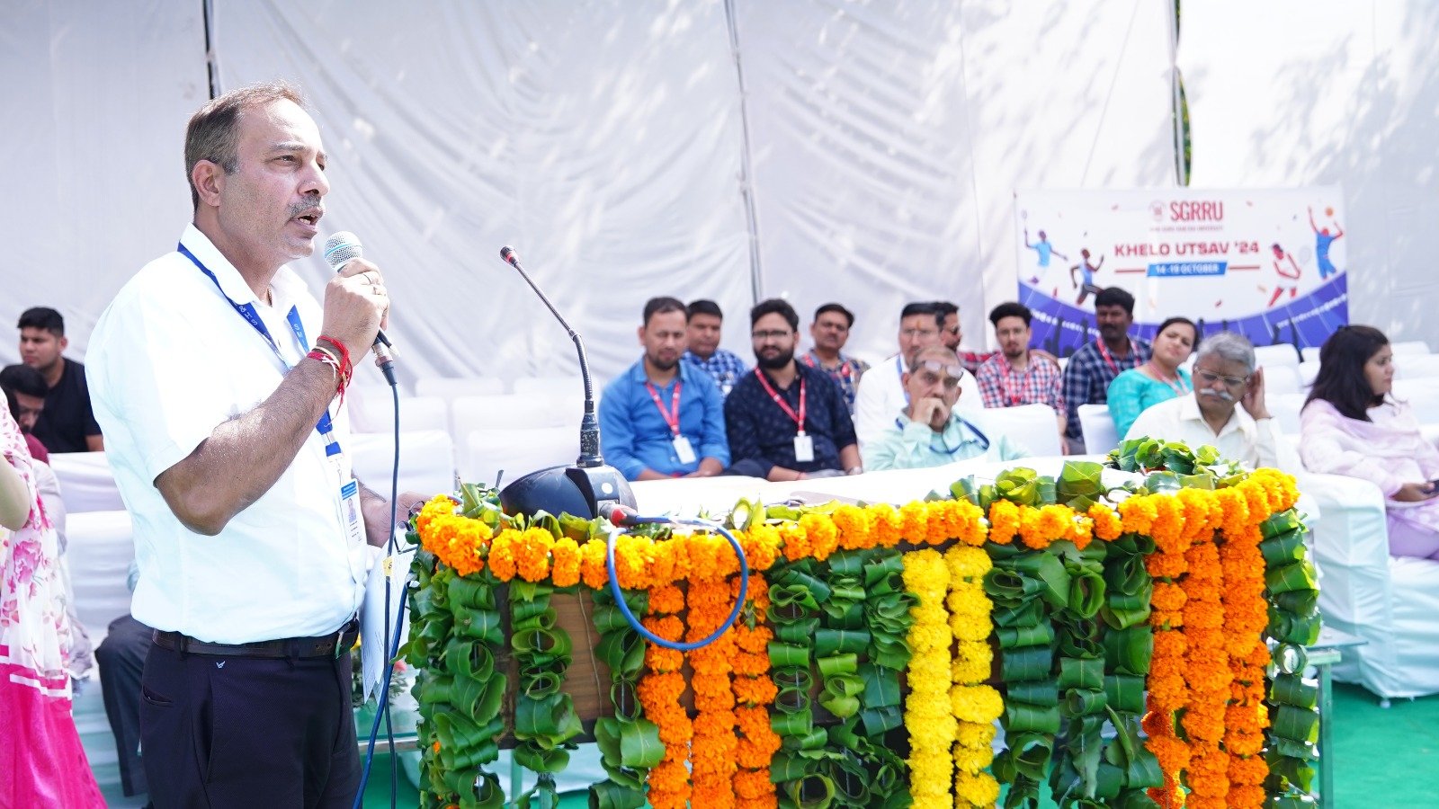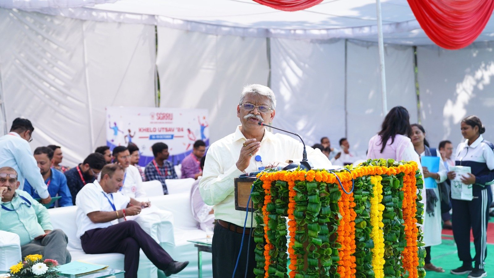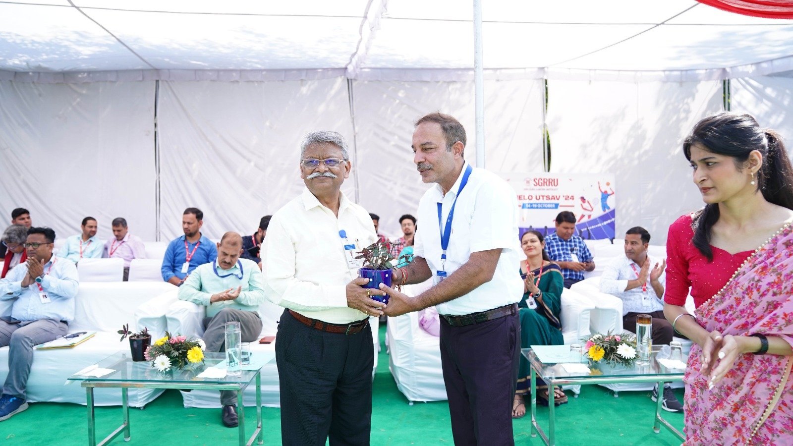 उ्दघाटन समारोह में विश्वविद्यालय के योग के छात्र-छात्राओं द्वारा की गई योग प्रस्तुति की भूरी भूरी प्रशंसा हुई। छात्र-छात्राओं ने योग आसनों के द्वारा मानसिक व शारीरिक संतुलन का शानदार संदेश दिया। आईटीबीपी के बैंड द्वारा सारे जहां से अच्छा हिन्दोस्तां हमारा गीत की मधुर धुन बजाई गई। एसजीआरआरयू के 11 संघटक काॅलेजों के छात्र-छात्राओं ने बैंड की मधुर धुन के साथ अनुशासित परेड एवं कदमताल का प्रदर्शन किया। डाॅ ईशा शर्मा ने स्वागत अभिभाषण पढ़ा।