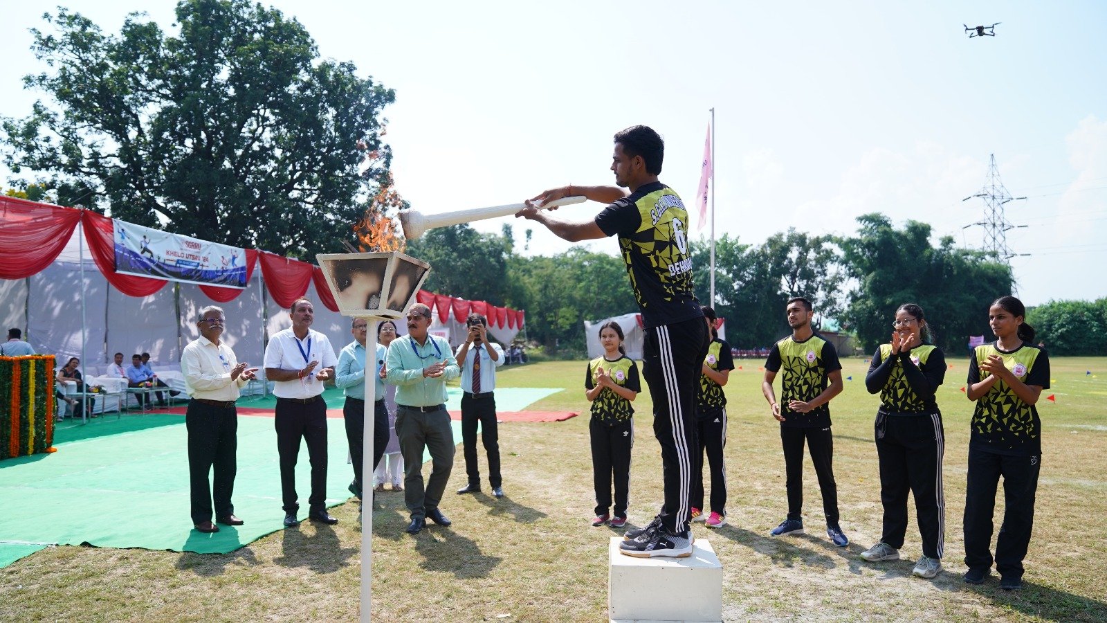 खेलोत्सव की मशाल का संचालन एथलैटिक्स की राष्ट्रीय स्तर के खिलाड़ी आयुष त्यागी ने किया। उनके साथ ड्राॅप बाॅल की राष्ट्रीय स्तर की खिलाड़ी अंजलि यादव, किक बाॅक्सिंग की राष्ट्रीय स्तर की खिलाड़ी अभिषेक, ड्राॅप बाॅल की राष्ट्रीय स्तर की खिलाड़ी प्राची, ड्राॅप बाॅल की राष्ट्रीय स्तर की खिलाड़ी विद्योत्मा, बैडमिंटन नाॅर्थ जाॅन की राष्ट्रीय स्तर की खिलाड़ी मनीषा बिष्ट ने मशाल का संचालन किया।  इन्होंने ट्रैक का चक्कर लगाया व मशाल जलाकर खेलोत्सव का प्रतिनिधित्व किया।