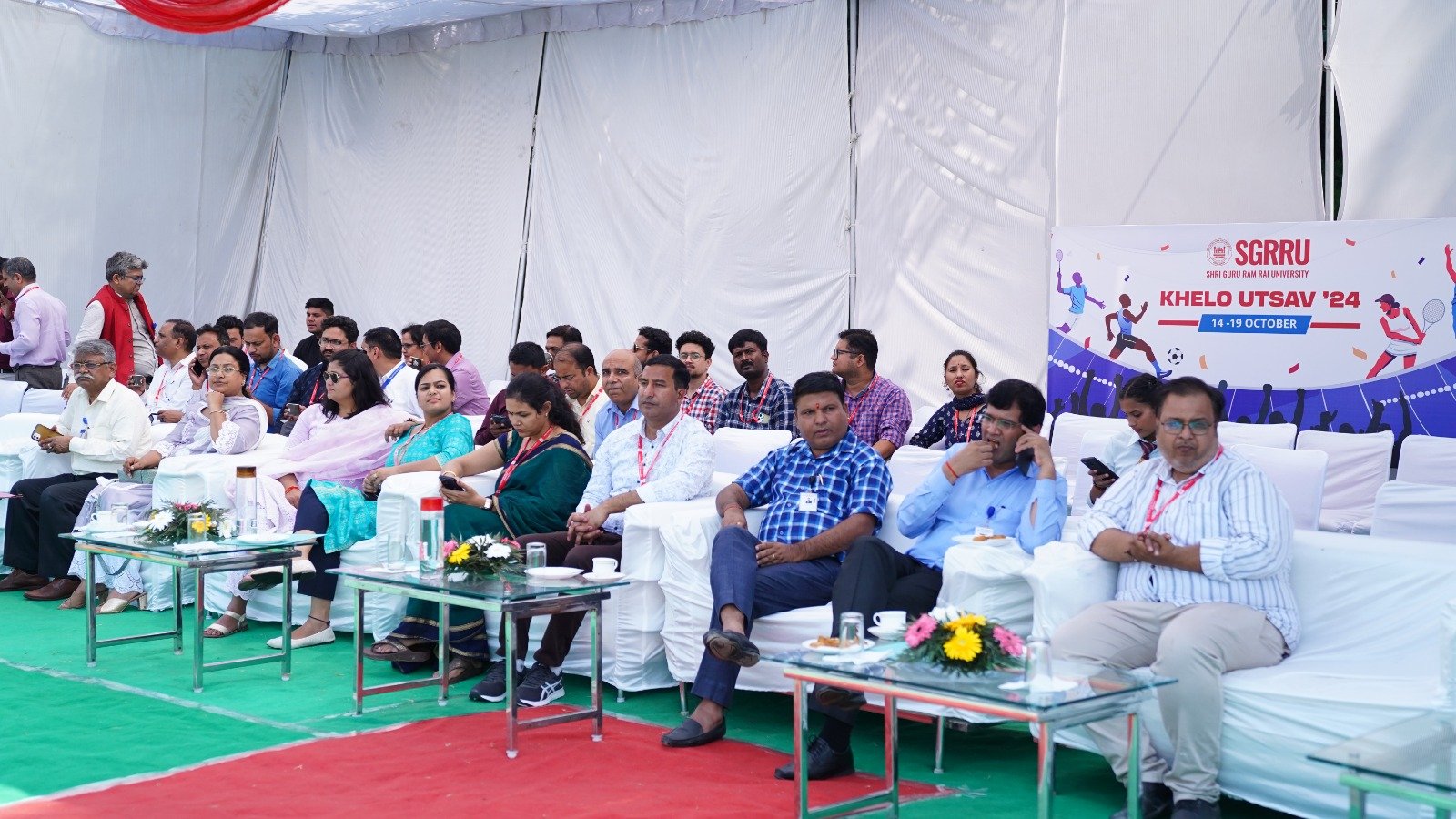 एनसीसी की सीनियर अंडर ऑफिसर सृष्टि बमोला 11 यूके बटालियन एवं अंडर ऑफिसर प्रियांशू पंवार 29 यूके बटालियन ने सभी कैडेट्स का प्रतिनिधित्व करते हुए मुख्य अतिथि को सलामी दी। एसजीआरआरयू की छात्रा अंजलि यादव ने विश्वविद्यालय के सभी छात्र-छात्राओं को स्पोर्ट्स स्प्रिट की शपथ दिलवाई। इस अवसर पर डाॅ आशीष कुलश्रेष्ठ, डाॅ मनबीर नेगी, डाॅ अनुजा रोहिल्ला, डाॅ अशोक भण्डारी, डाॅ मनीष देव शर्मा, डाॅ खिलेन्द्र सिंह, डाॅ हरलीन कौर, डाॅ राकेश रयाल सहित सभी सकांयाध्यक्ष, विभागाध्यक्ष, फेकल्टी सदस्य, स्टाफ सदस्य व छात्र-छात्राएं उपस्थित थे।