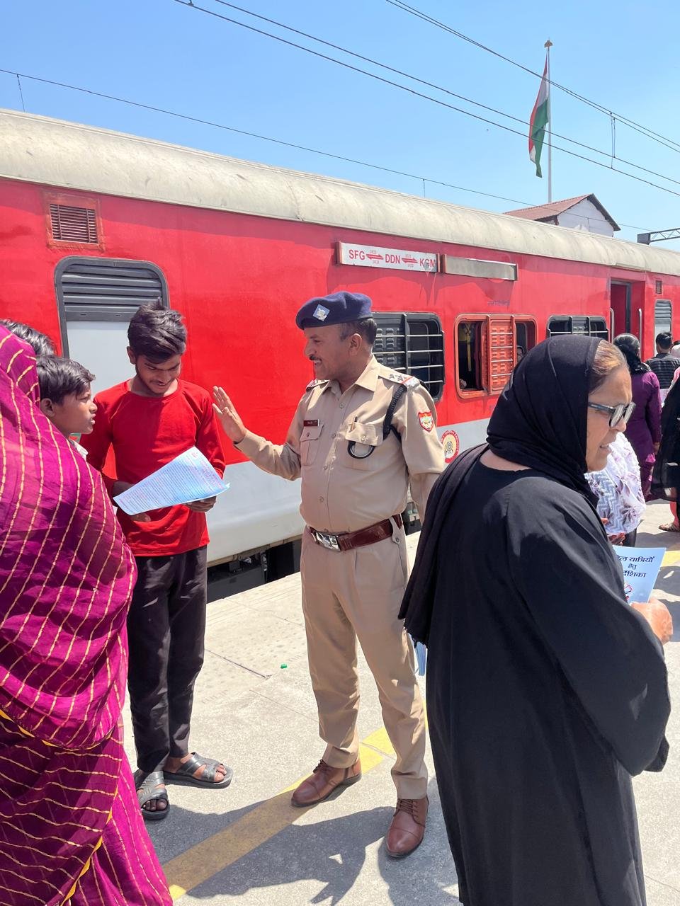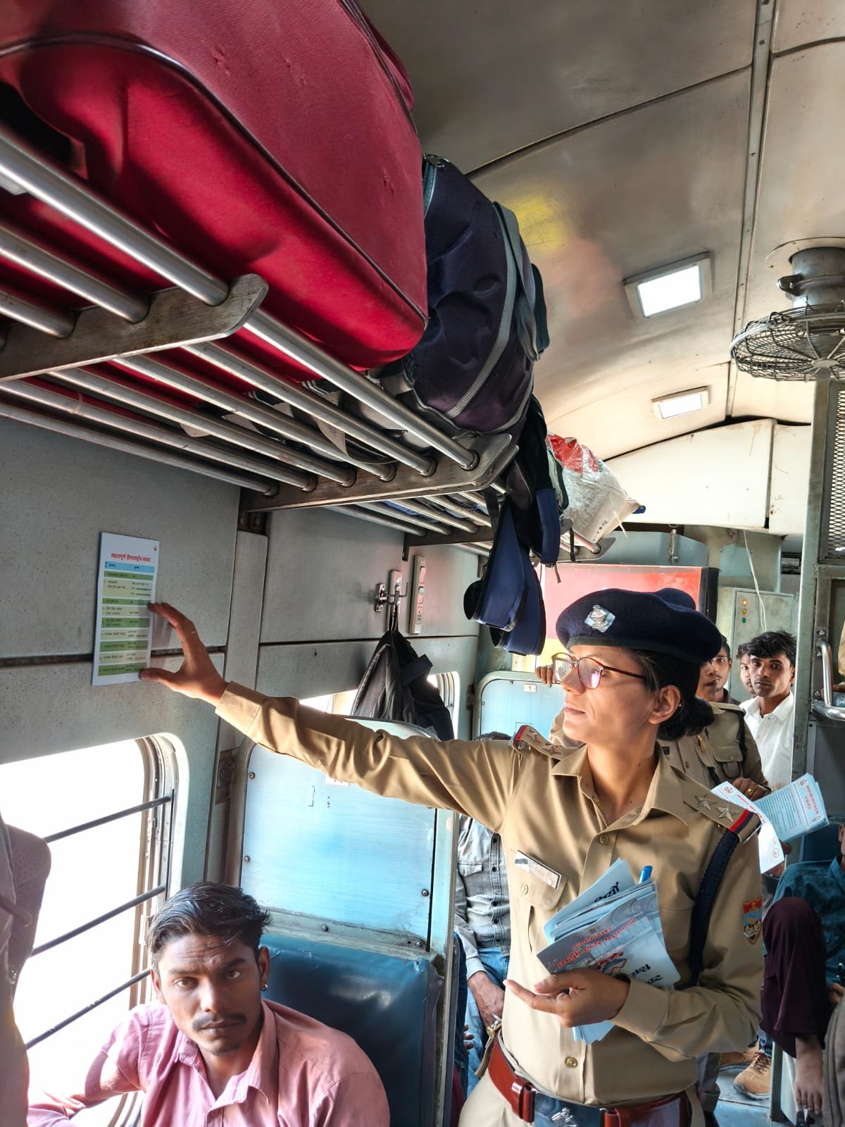 उत्तराखंड पुलिस एप्लीकेशन के अंतर्गत गौरा शक्ति माड्यूल के बारे में जानकारी देकर रजिस्ट्रेशन करने हेतु जागरूक किया गया महिलाओं को अपनी समस्या को गौरा शक्ति माड्यूल के अंतर्गत दर्ज कराने हेतु जागरूक किया गया एवं ट्रेन में यात्रा करने के दौरान बरती जाने वाली सावधानियों से संबंधित पंपलेट यात्रियों में वितरित किए गए एवं ट्रेन में पंपलेट चस्पा किए गए।