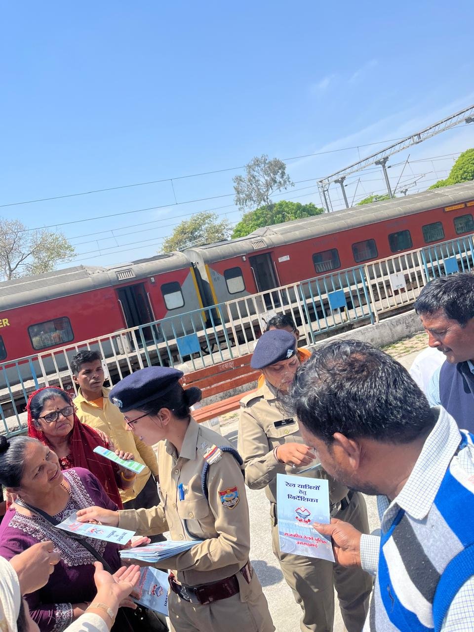 थाना जीआरपी देहरादून पुलिस ने थानाध्यक्ष अशोक कुमार के निर्देशन में उपनिरीक्षक प्रवीना सिदोला एवं पुलिस टीम ने देहरादून रेलवे स्टेशन पर आमजन को जागरूक किया । साथ ही सोशल मीडिया के (फेसबुक, instagram, ट्विटर तथा व्हाट्सअप आदि) से संबंधित साइबर अपराधों से बचाव, डायल-112, साइबर हेल्पलाइन-1930, नशा उन्मूलन और उत्तराखण्ड पुलिस एप आदि के बारे में जानकारी देते हुए किसी भी प्रकार की सहायता या रेलवे स्टेशन क्षेत्र अंतर्गत होने वाली अवैध गतिविधियों/मादक पदार्थों की तस्करी की सूचना देने के लिए प्रेरित किया गया।