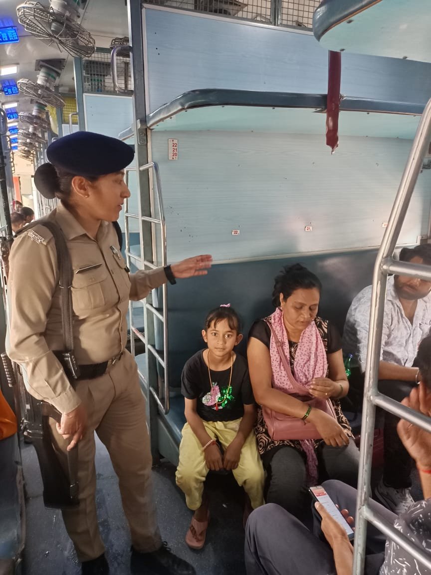 • महिला सुरक्षा : महिला यात्रियों को अपनी सुरक्षा के प्रति जागरूक रहने की सलाह दी गई। उन्हें आपातकालीन स्थिति में जीआरपी हेल्पलाइन नंबर और अन्य सुरक्षा उपायों के बारे में जानकारी दी गई। महिला यात्रियों को सतर्क रहने और किसी भी संदिग्ध गतिविधि की सूचना तुरंत पुलिस को देने के लिए कहा गया।