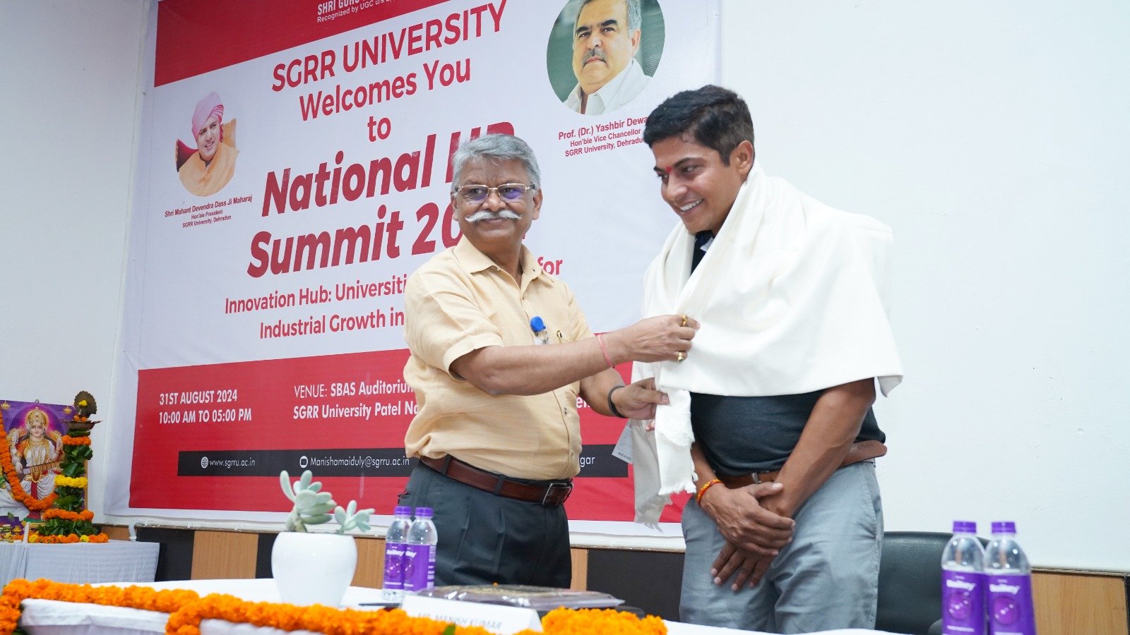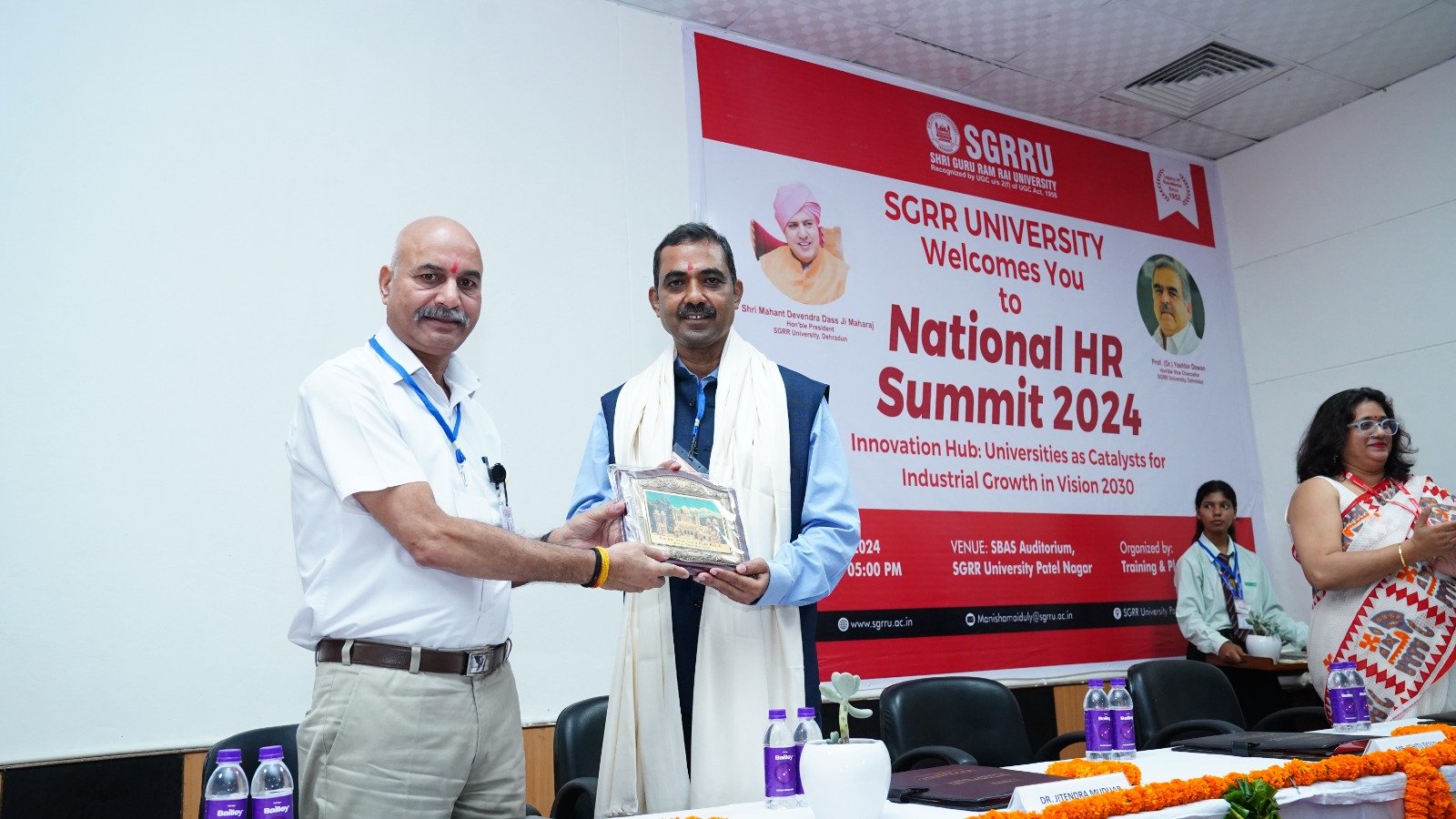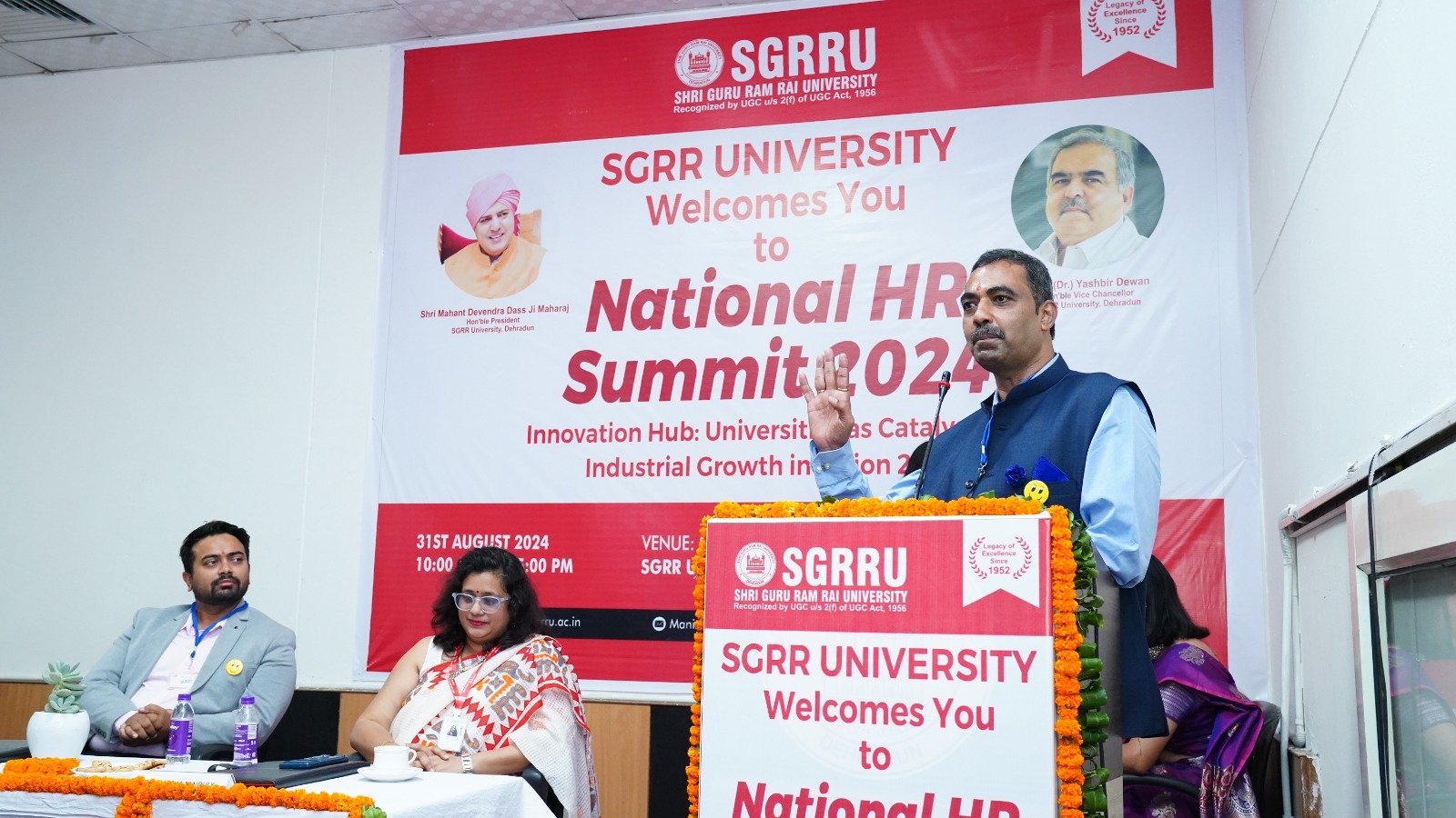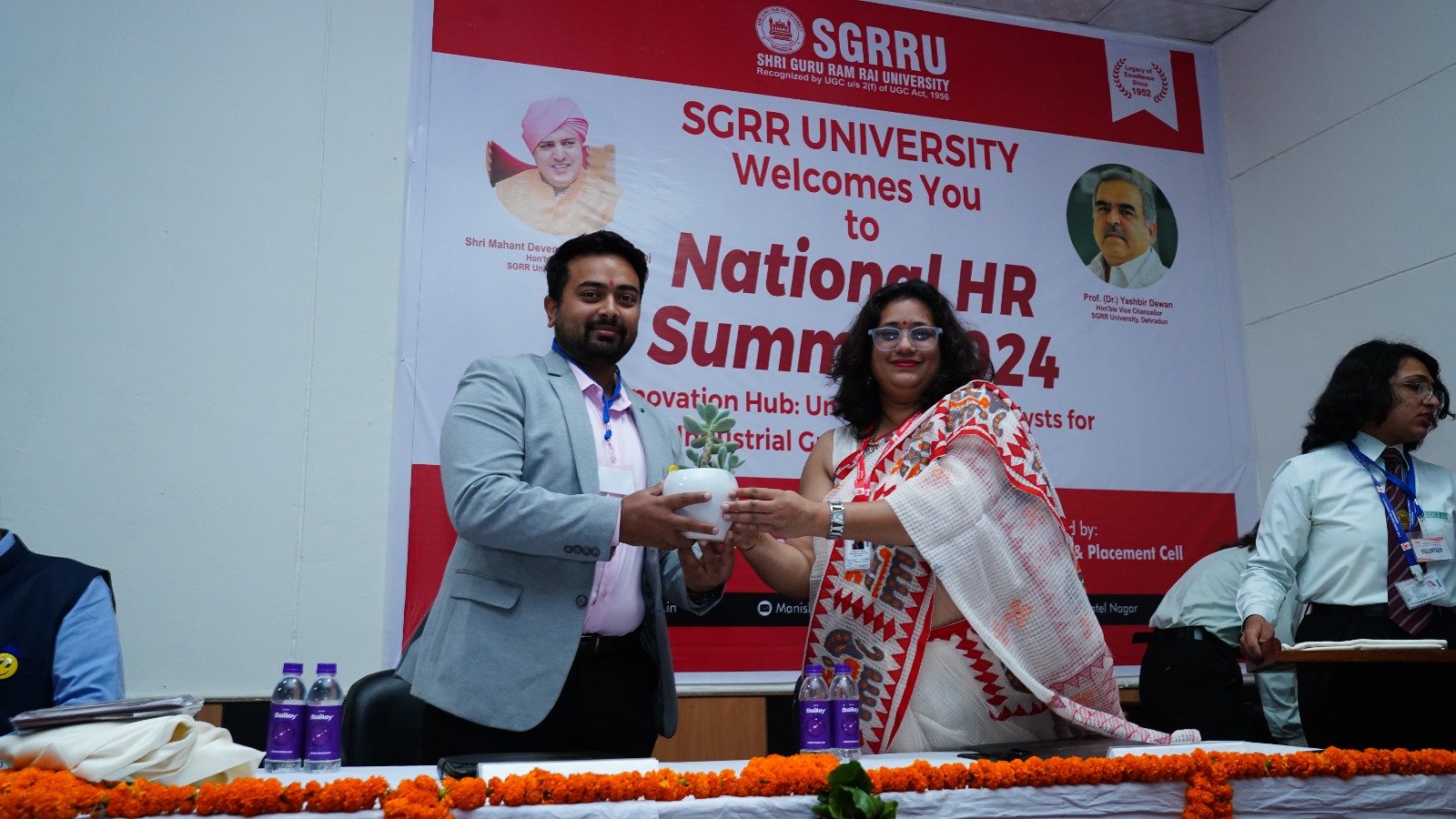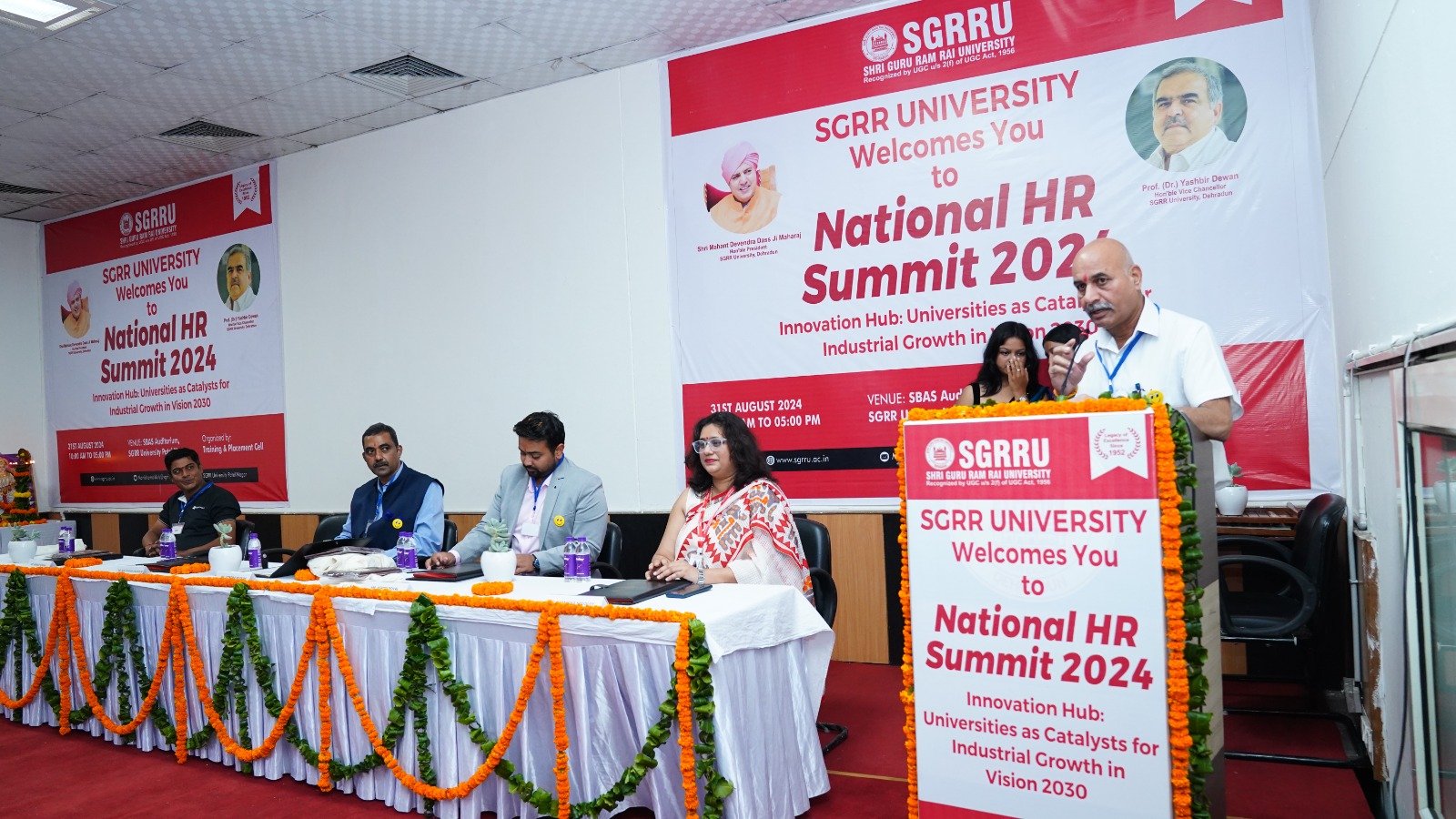 एसजीआरआर विश्वविद्यालय के प्रेसीडेंट श्रीमहंत देवेंद्र दास जी महाराज ने आयोजकों को शुभकामनाएं दीं और साथ ही छात्र-छात्राओं को ऐसे रोजगारपरक सम्मेलनों में बढ़-चढ़ कर प्रतिभाग करने के लिए प्रेरित किया। विश्वविद्यालय के कुलपति प्रोफेसर डाॅ. यशबीर दिवान ने कहा कि इस प्रकार के कार्यक्रम युवा पेशेवरों की विशेषज्ञता, कौशल और क्षमताओं को बढ़ाते हैं। विश्वविद्यालय छात्र-छात्राओं के हित के लिए सदैव तत्पर रहा है। उन्होंने कहा कि युवा पढ़ाई के साथ साथ अपने लक्ष्य पर ध्यान केन्द्रित रखें। युवा अपने माता पिता और गुरुजनों के विश्वास पर खरा उतरने के लिए प्रतिबद्ध हों तभी वे सच्चे रूप से राष्ट्र निर्माण में अपनी सहभागिता सुनिश्चित कर पाएंगे।